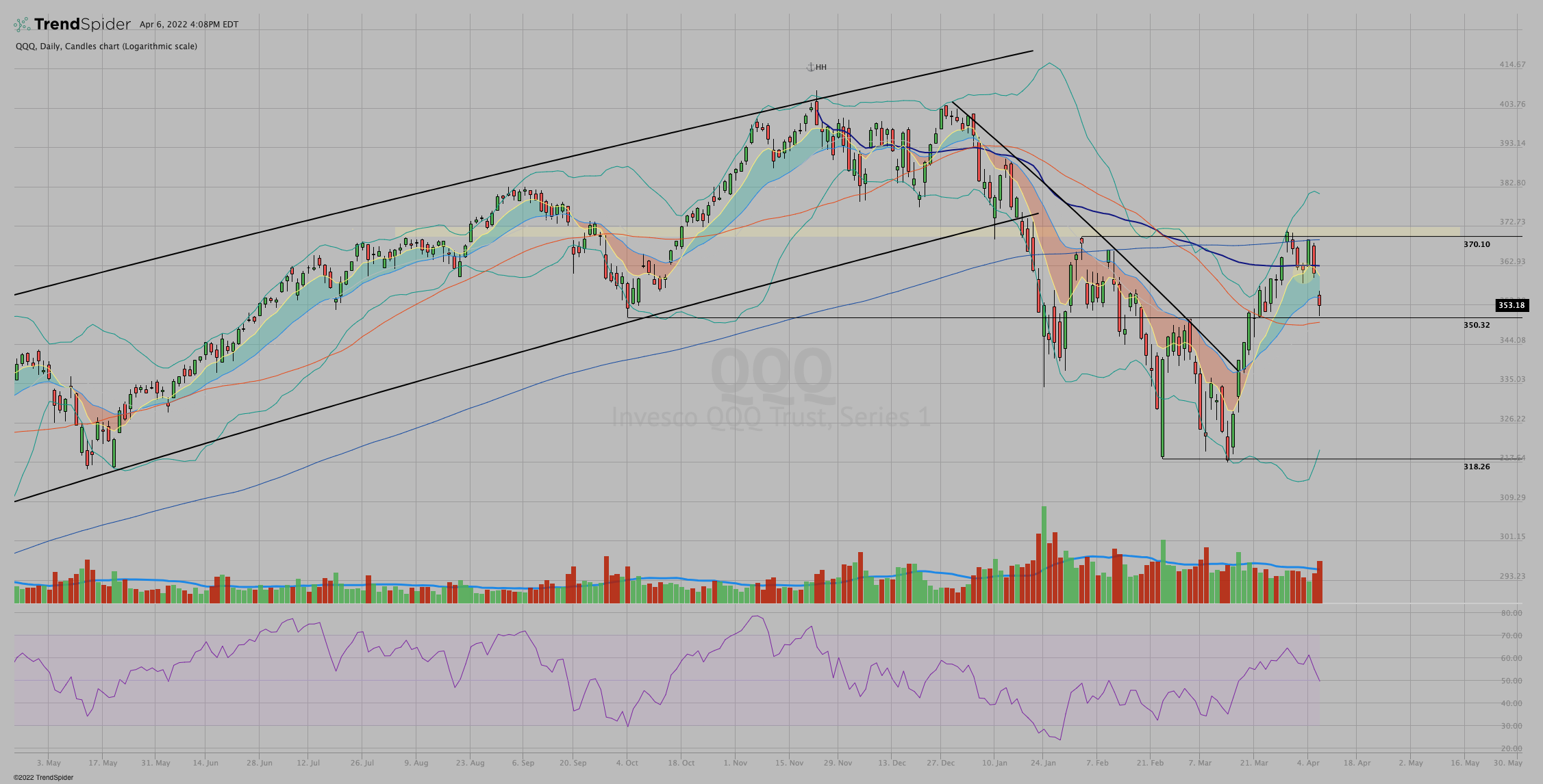 $QQQ has a similar-looking chart but with a neutral range of 350–370.