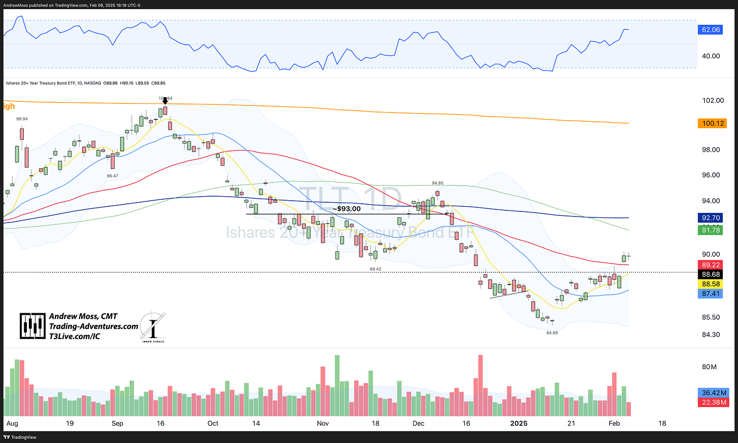 TLT is back over the $88.68 pivot, and the 50-day MA as bond improvement continues.