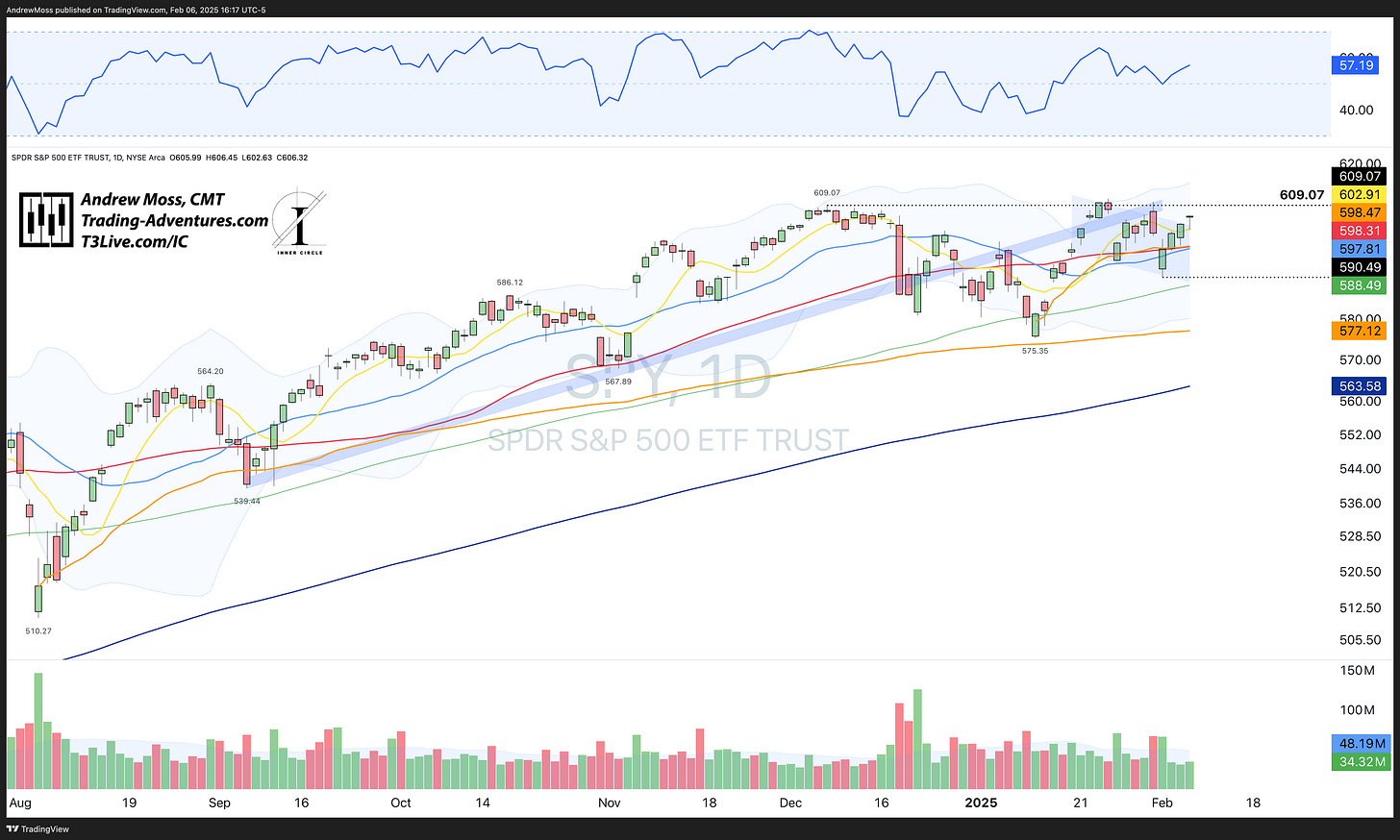 As the indexes move higher and beyond the chop and consolidation ranges while dragging their 5-day MAs higher, we want to be ready for dips that successfully test support. A retest of rising MAs can be best, but support can come from many different sources.