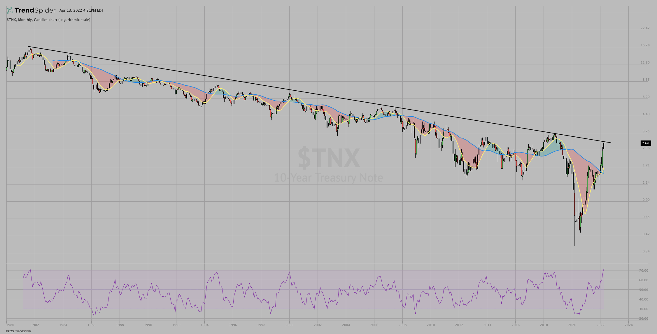The idea is that the action around this trendline will be an indicator of meaningful change in the interest rate environment.
