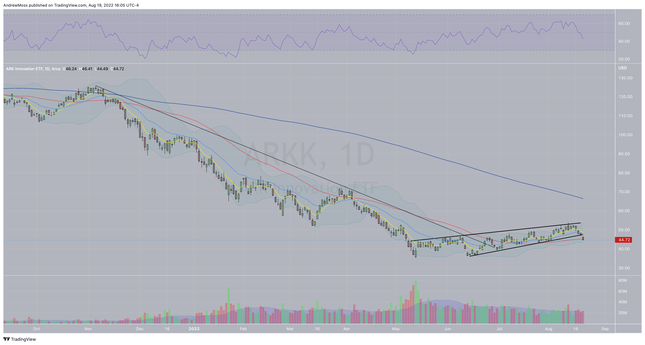 ARKK 0.00%↑ Also broke down from a rising channel.
