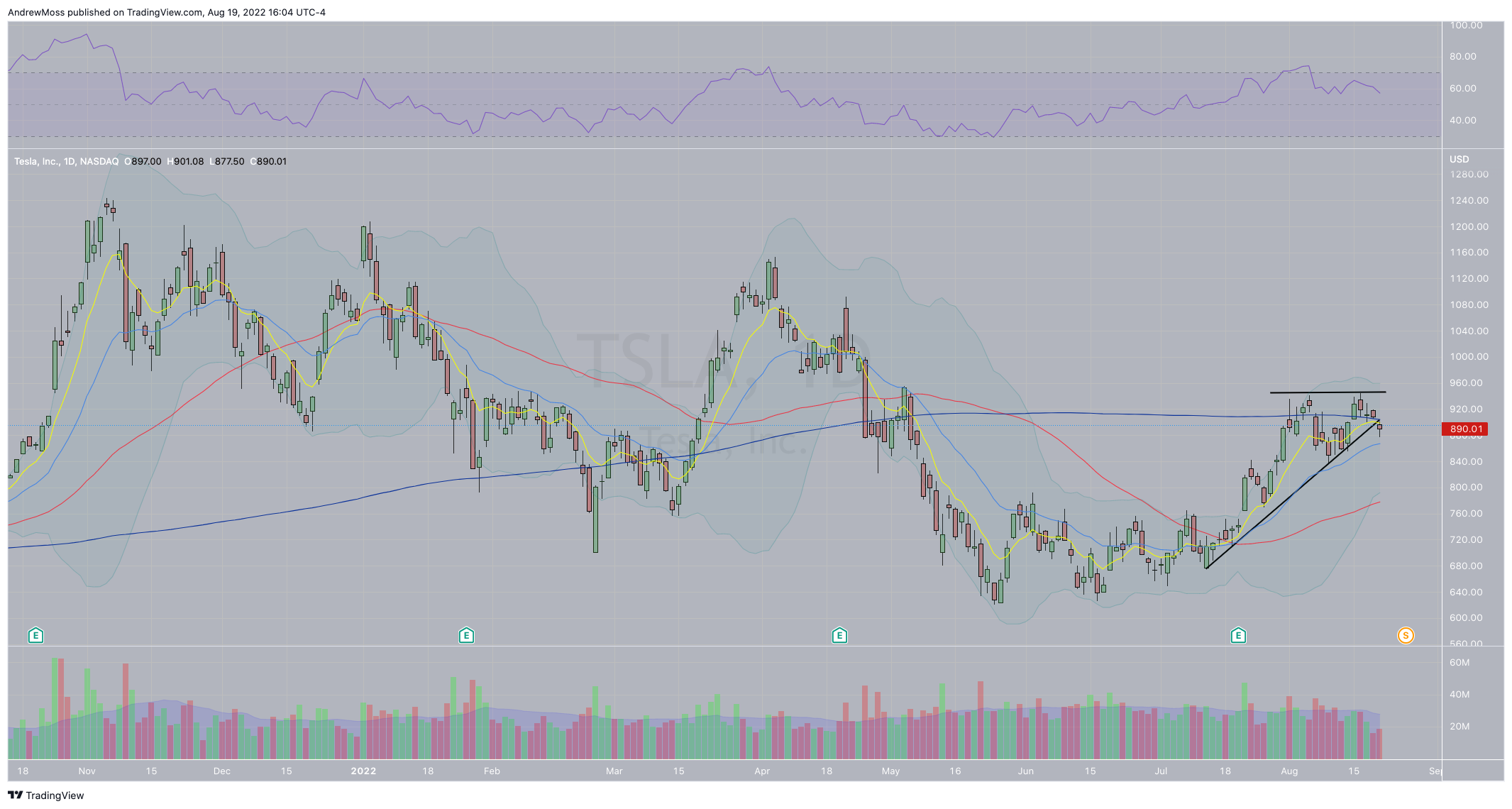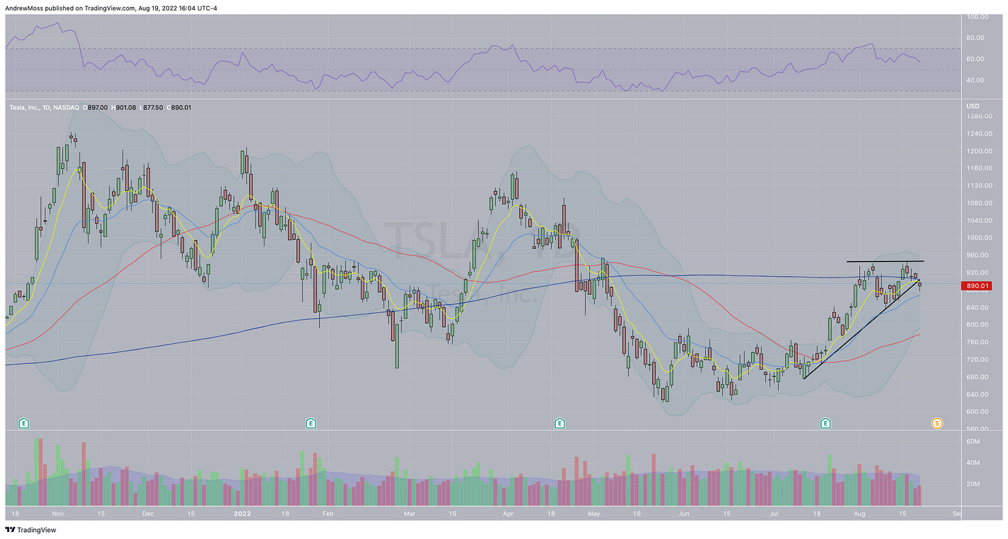 TSLA 0.00%↑ Tesla broke down from the ascending triangle pattern and has the 200-day MA just overhead.
