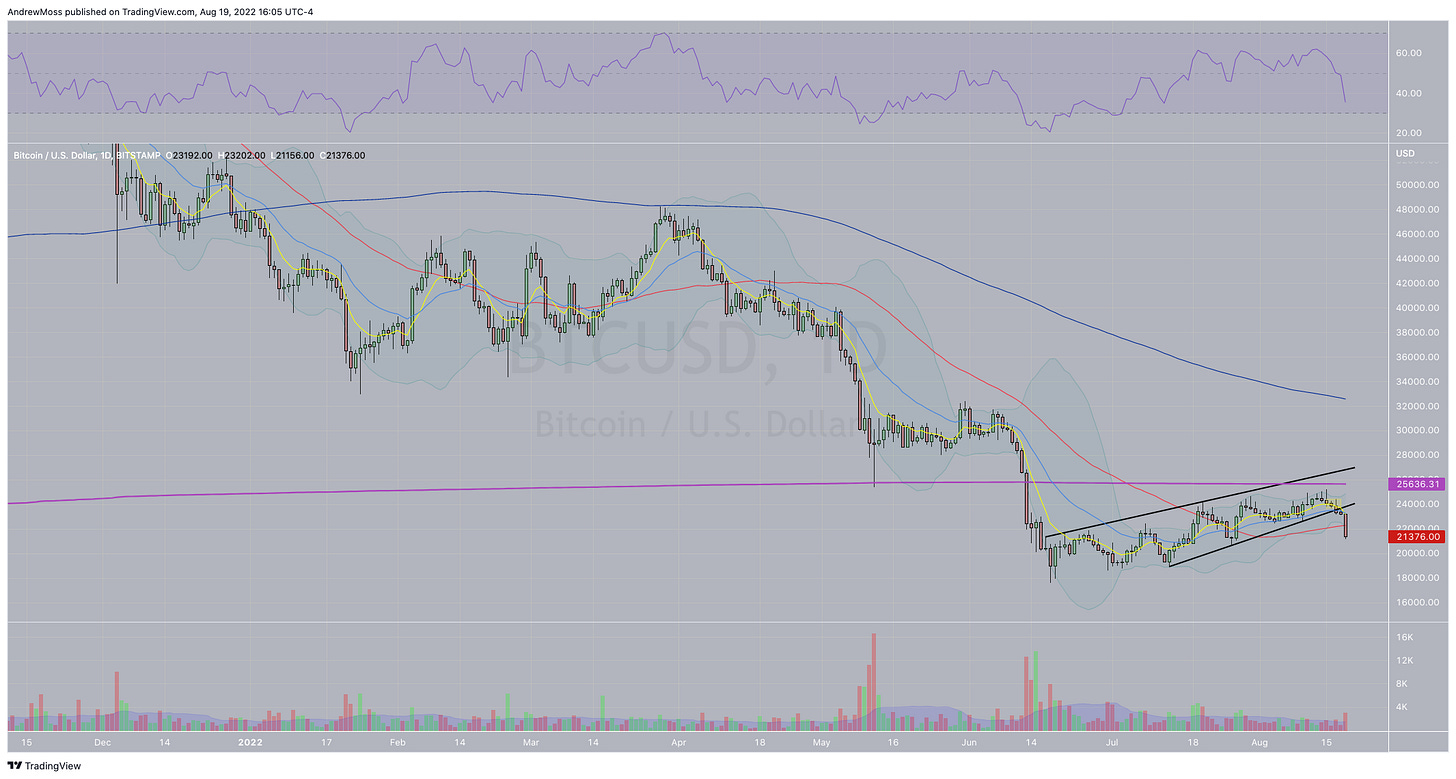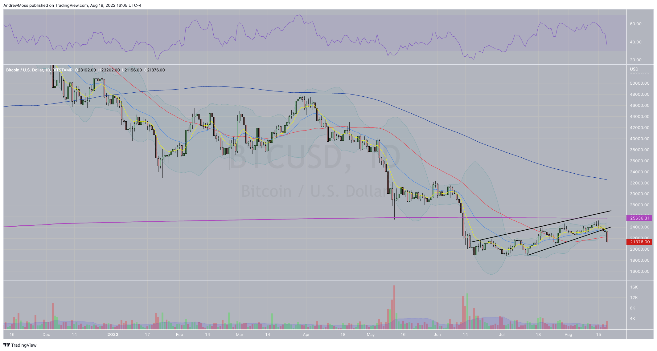 $BTCUSD Bitcoin has broken down from the rising channel.