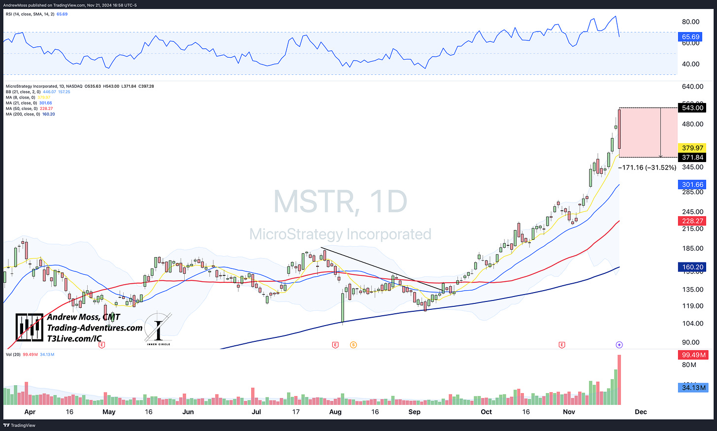 For active traders, there are extension plays to pounce on, as described with today’s MSTR short sale.