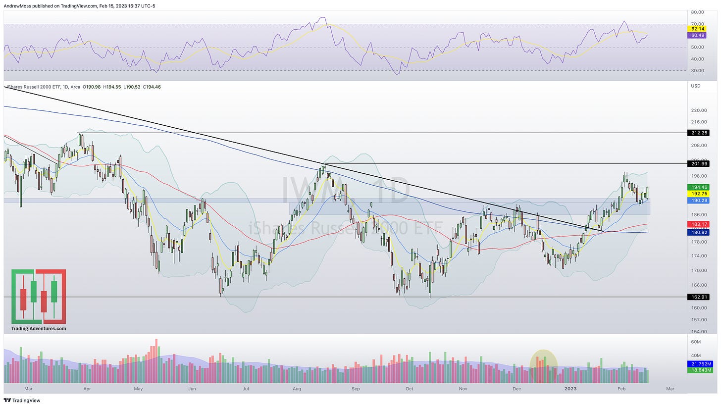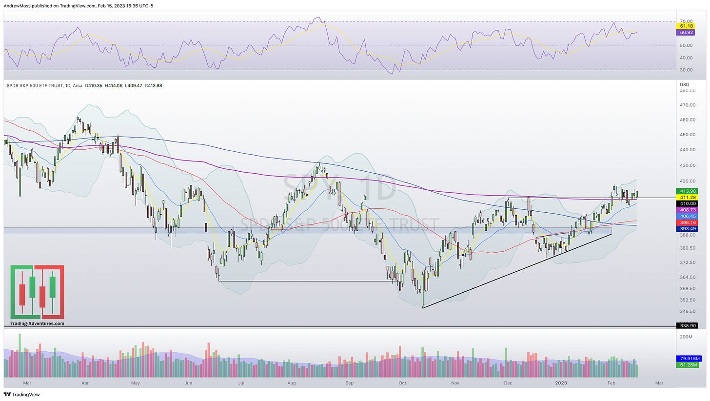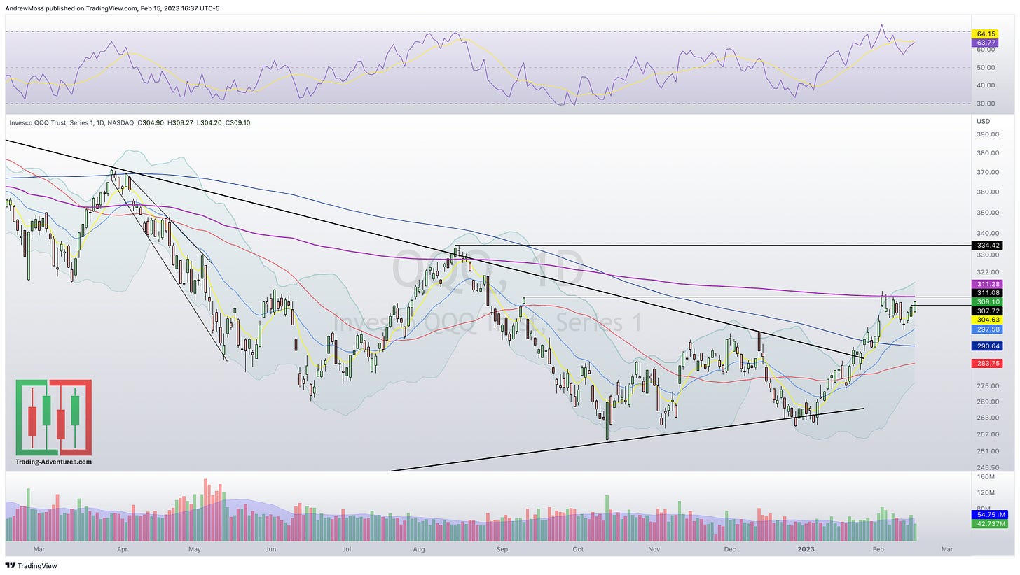 And it’s not just the mega-caps that are going up. The equal-weight indexes, RSP and QQEW, look bullish too.