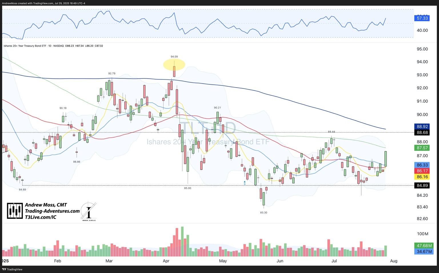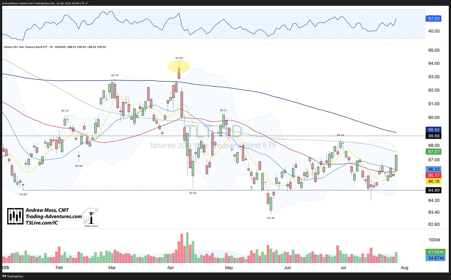 TLT put in a notable green day, moving well above its 8, 21, and 50-day moving averages. Solid action ahead of tomorrow’s rate decision— something to watch closely.