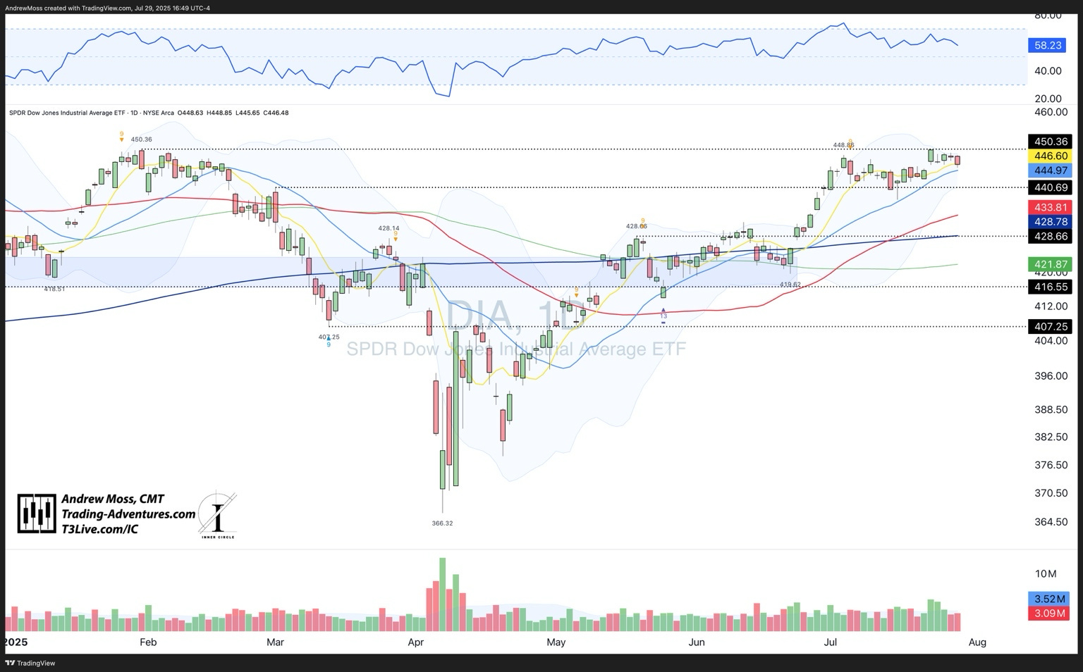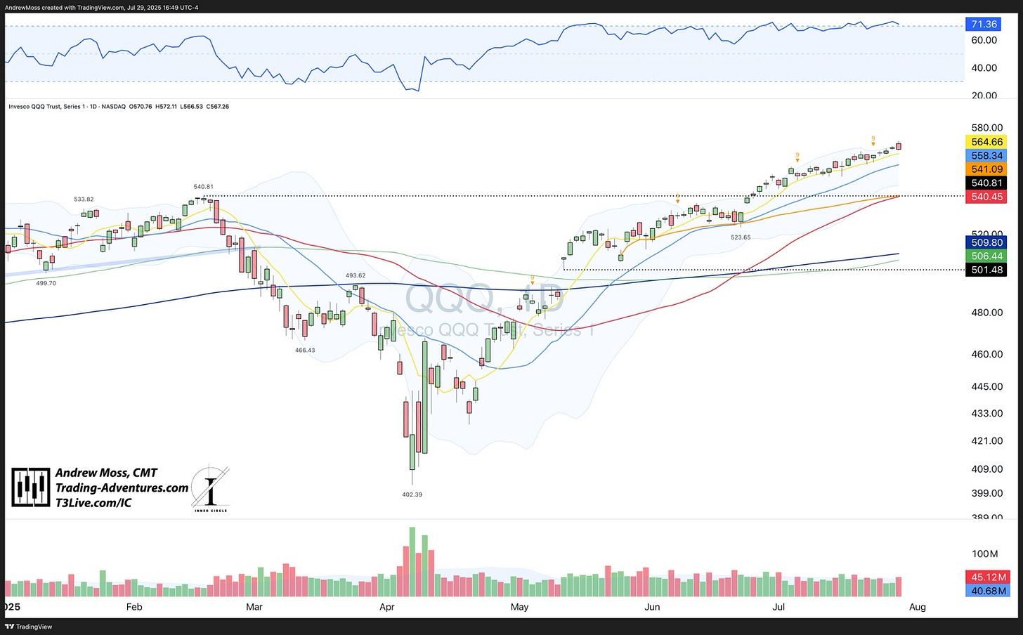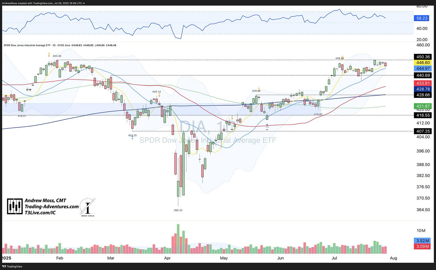 That said, the technical trends are still strong. Most major ETFs are holding rising short- and intermediate-term moving averages, and leadership in tech continues to support the broader tape.
