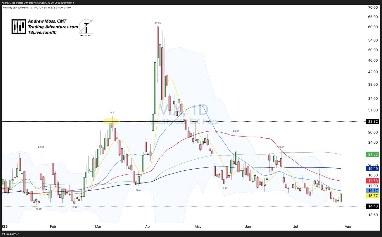It’s not just one event — it’s four heavyweight drivers, each with potential to shift sentiment, reprice expectations, or spark rotation. Add to that a market that’s extended but resilient, and you get the current tone: cautious, compressed, and waiting for direction.
