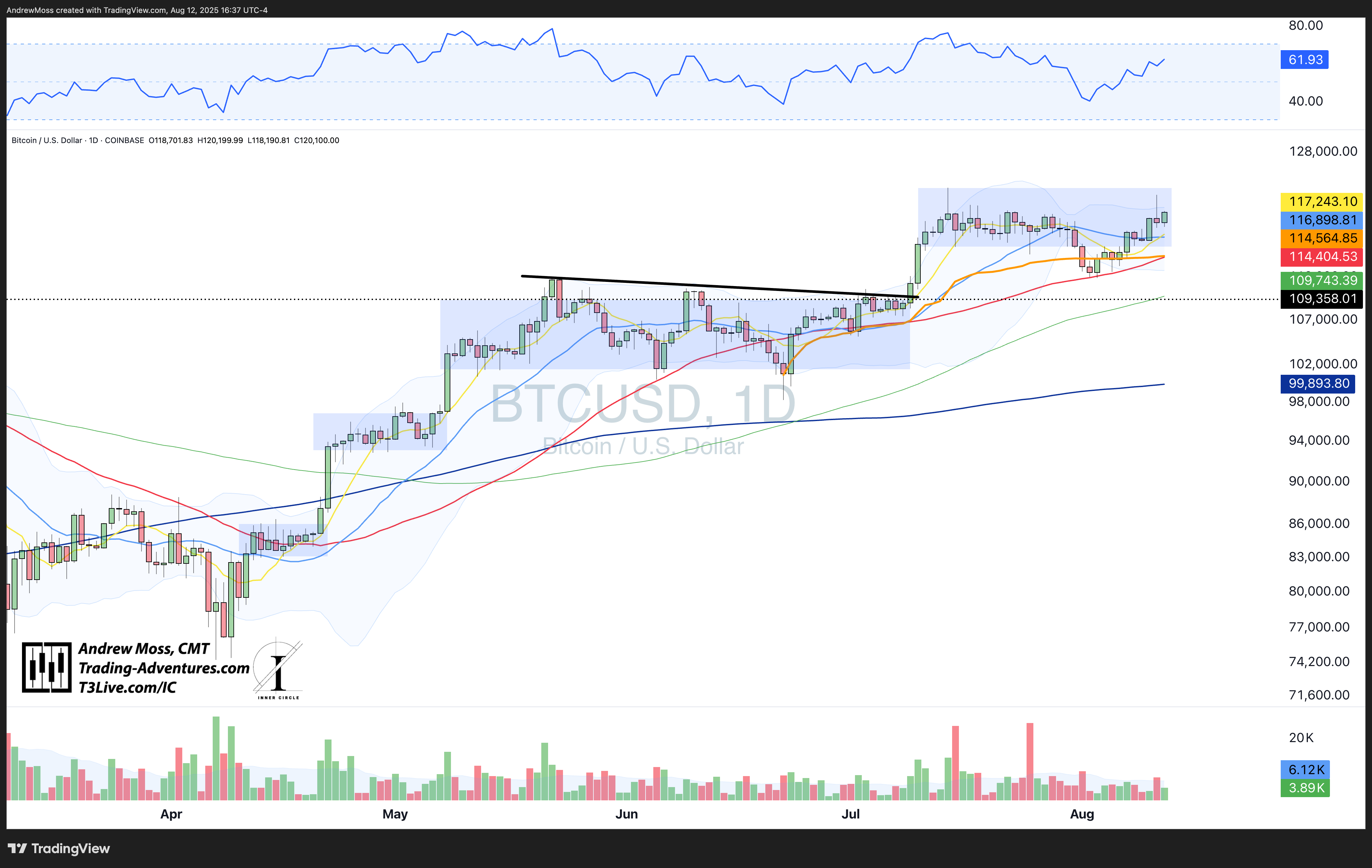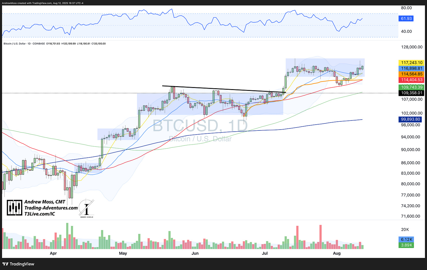 BTCUSD hit $112k yesterday and is holding most of those gains well so far today. But, the next move higher can not truly begin until price moves above this box, and stays there.