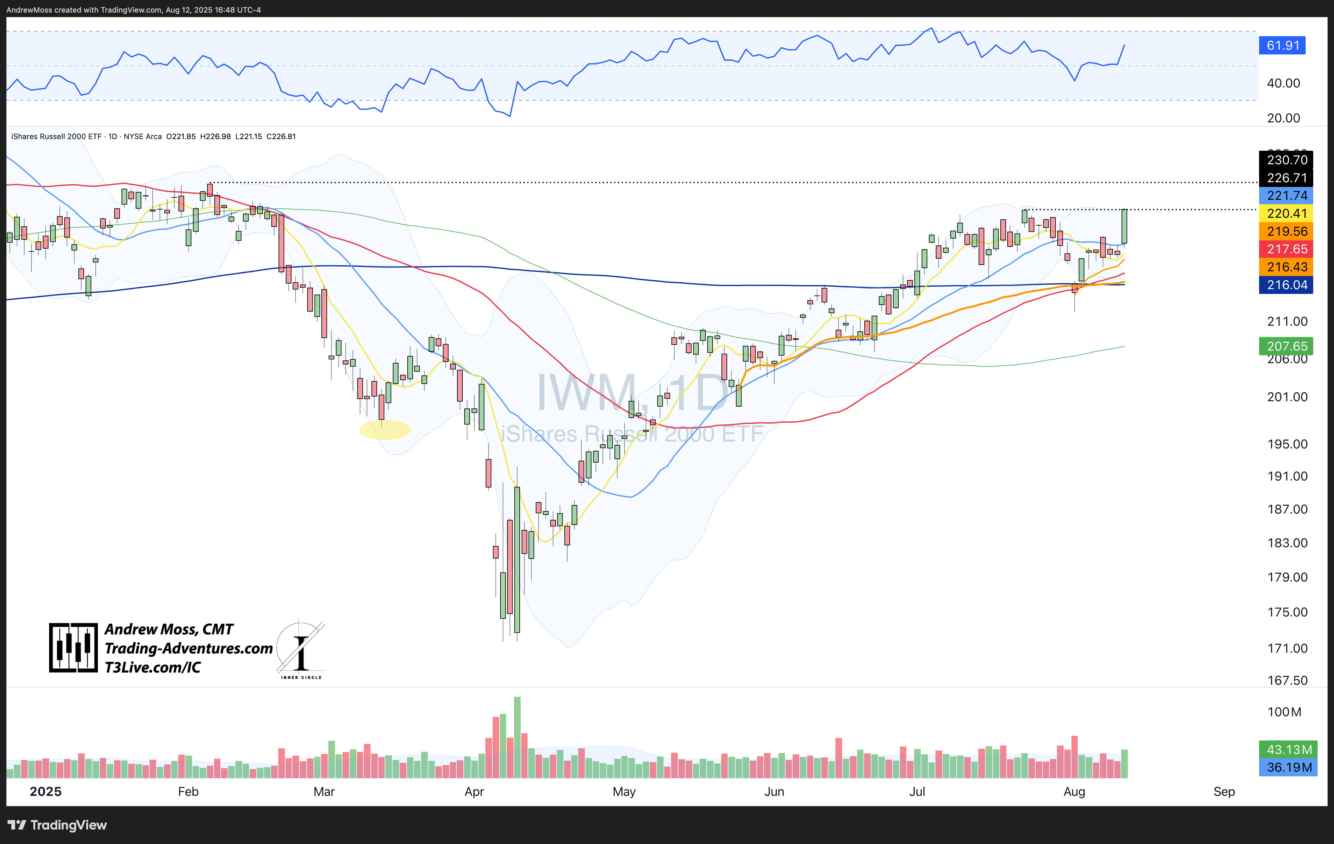 The Dow held firm, small caps extended their rebound, and big tech stayed strong with AAPL pushing toward its $231 pivot and TSLA finding support on the morning dip.