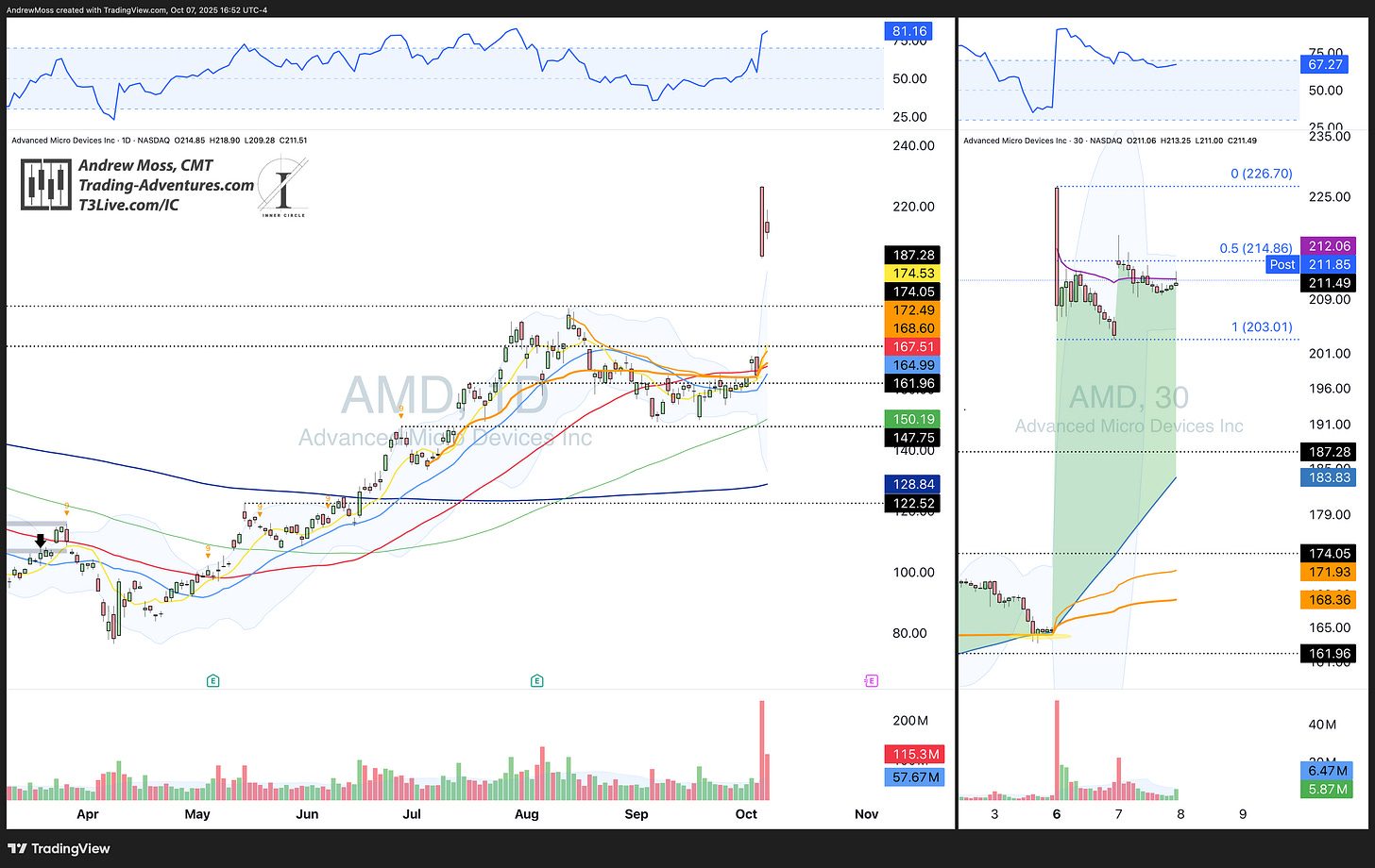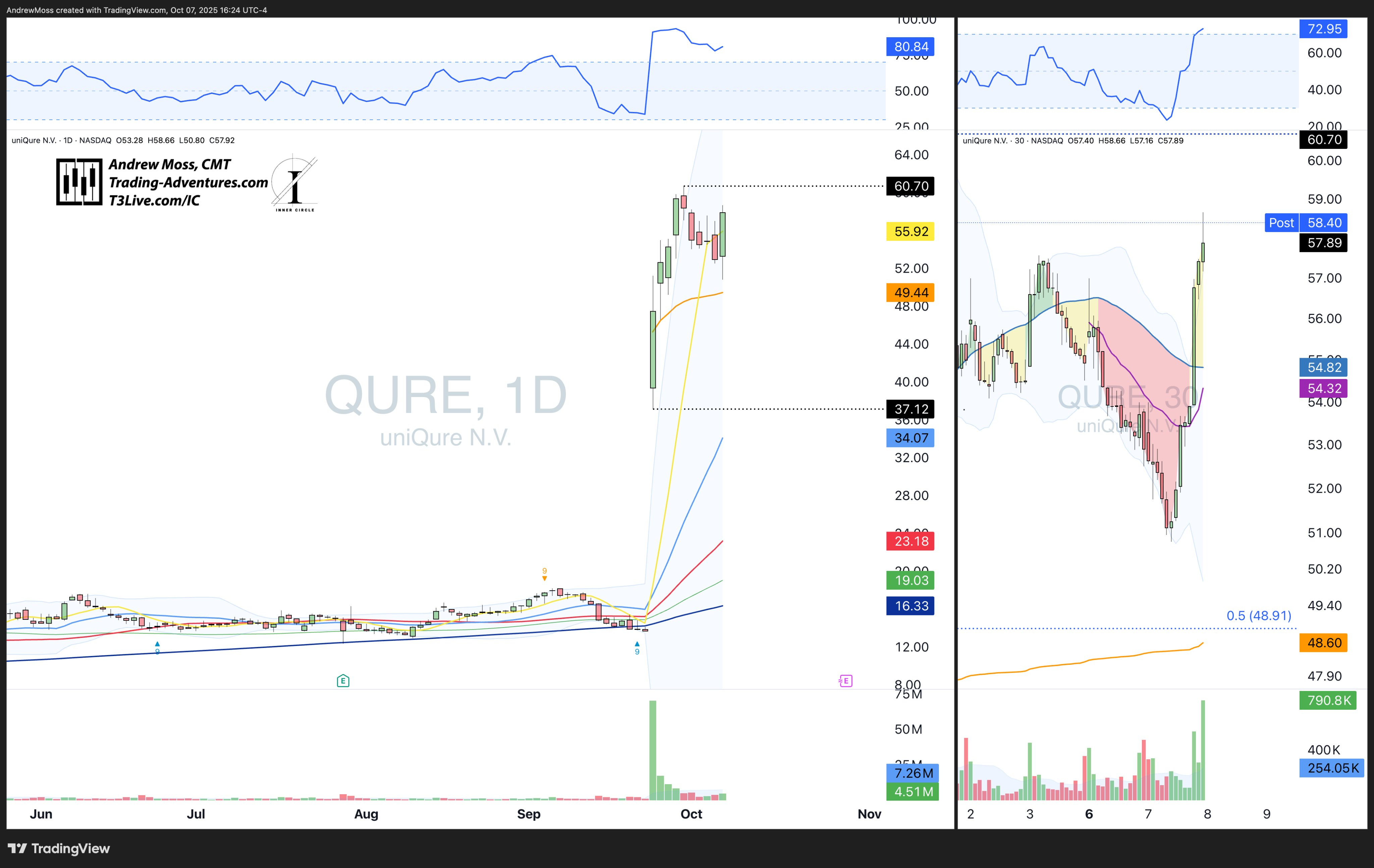 Held roughly half of Monday’s explosive range and closed +3.8%. Constructive digestion after a big move.