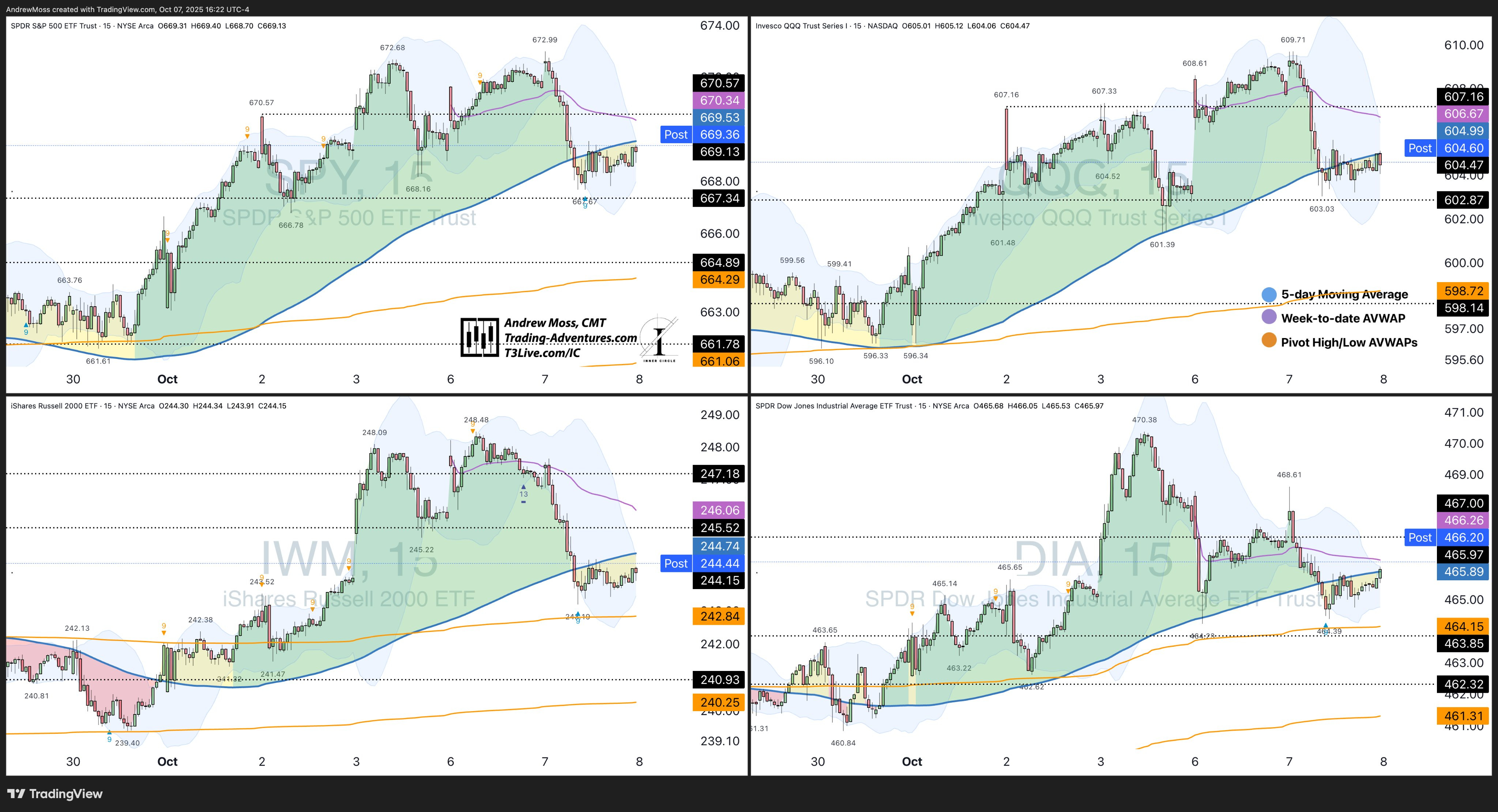 Still digesting recent gains. Quick tag of the week-to-date AVWAP at the open, then a fade to close below the 5-day MA.