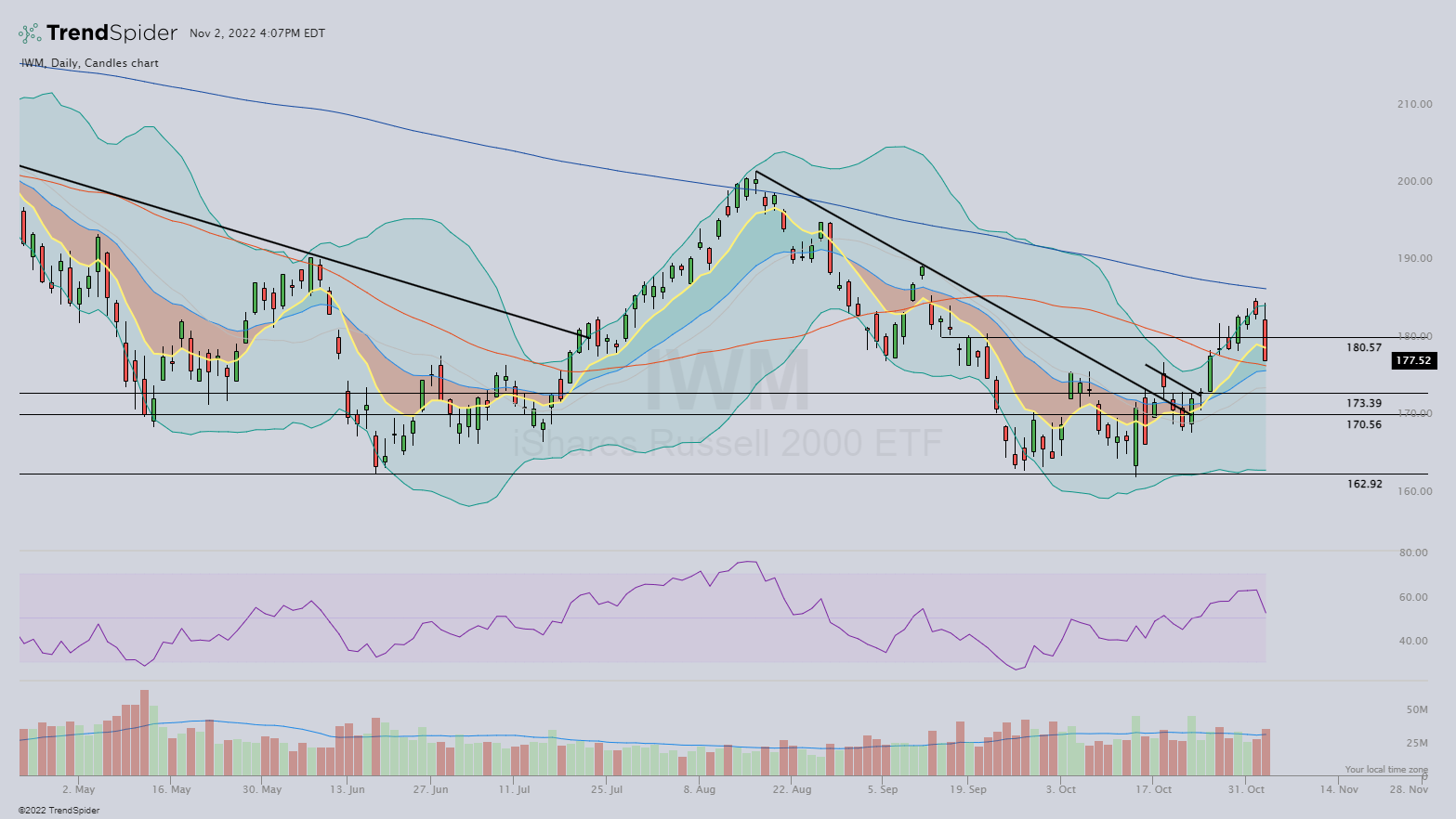 $IWM lost the 8-day EMA but is still above the 21-day EMA and the 50-day SMA. That doesn't feel very optimistic considering the overall conditions.