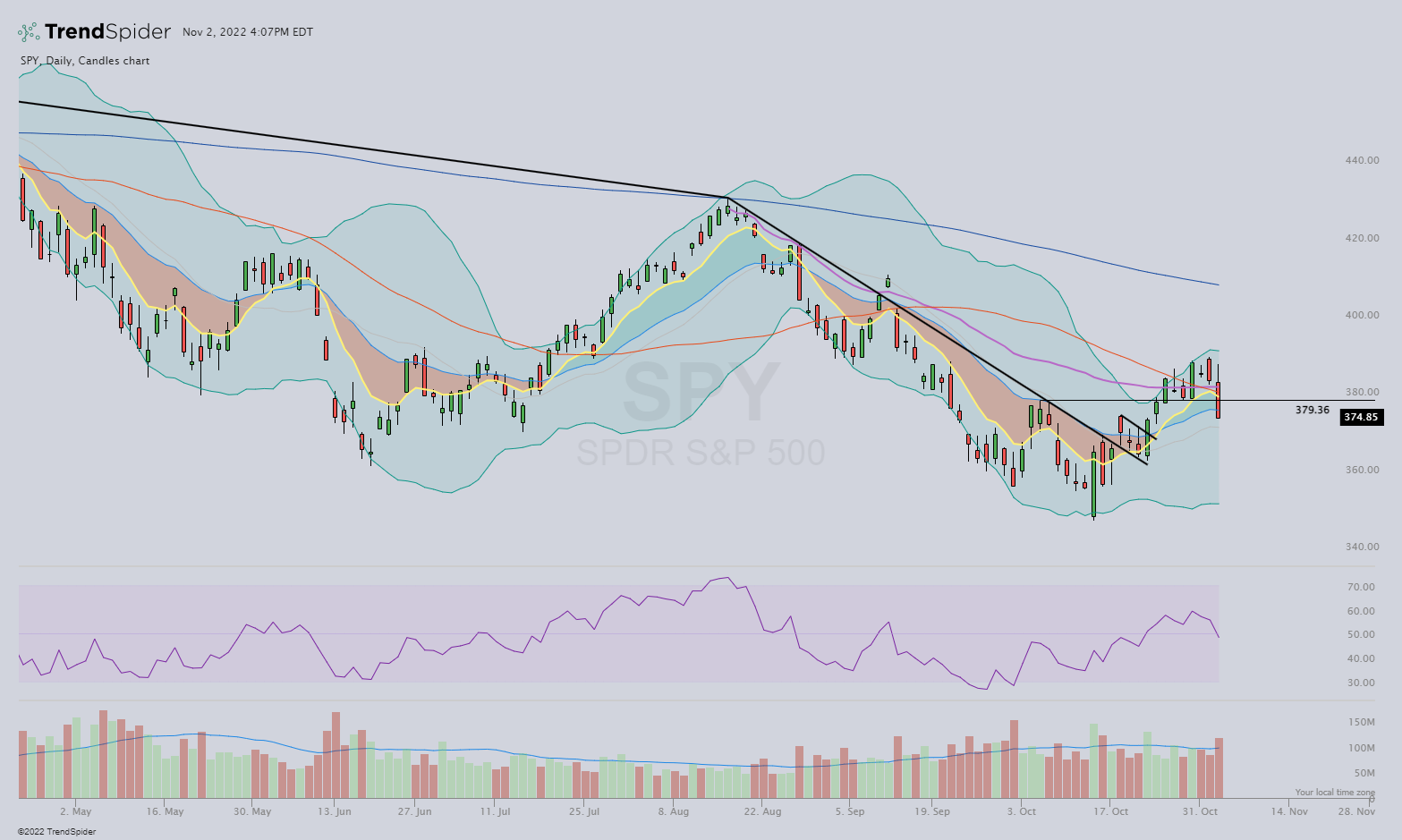 $SPY lost the 21-day EMA and the 8-day is now curling down.