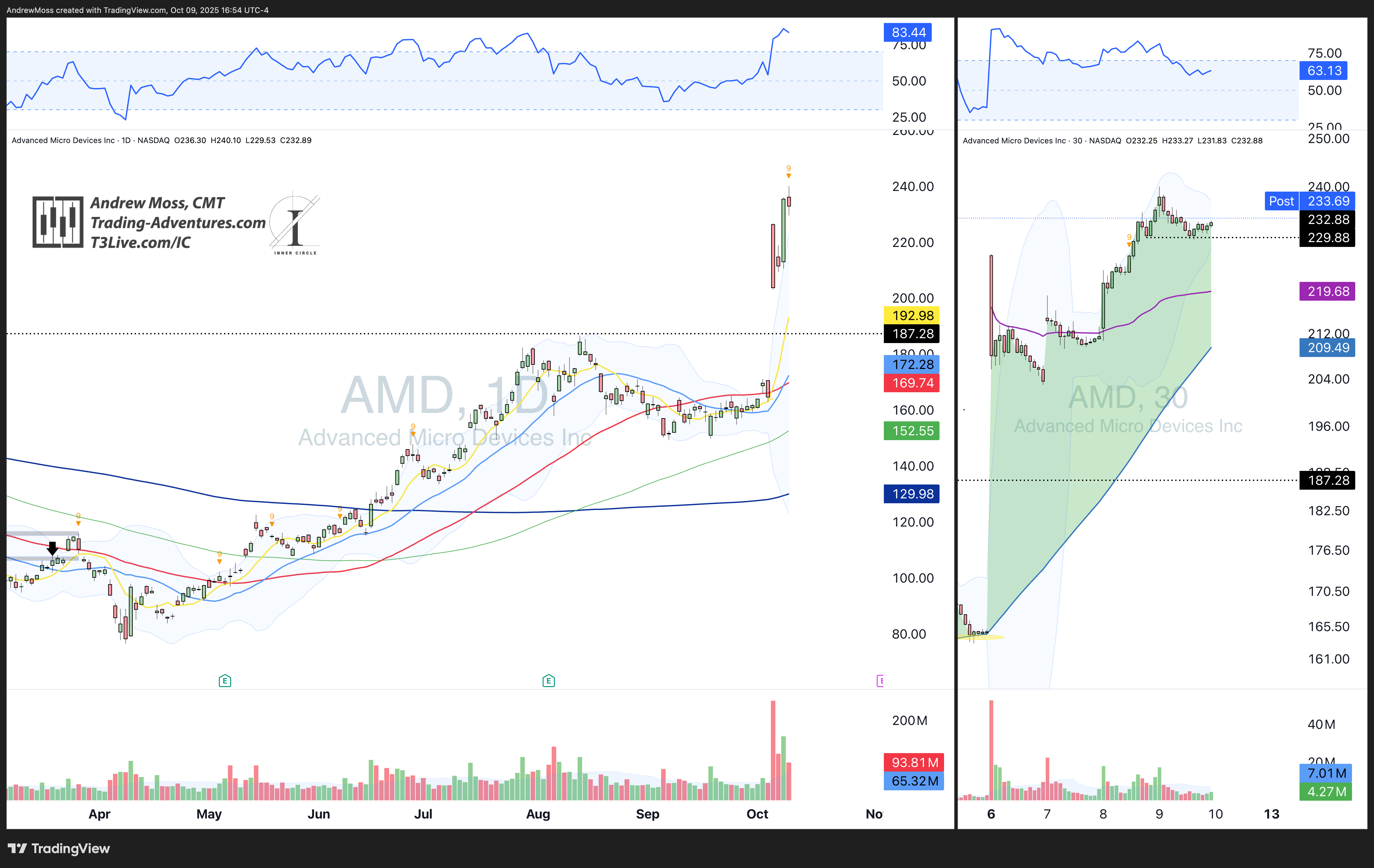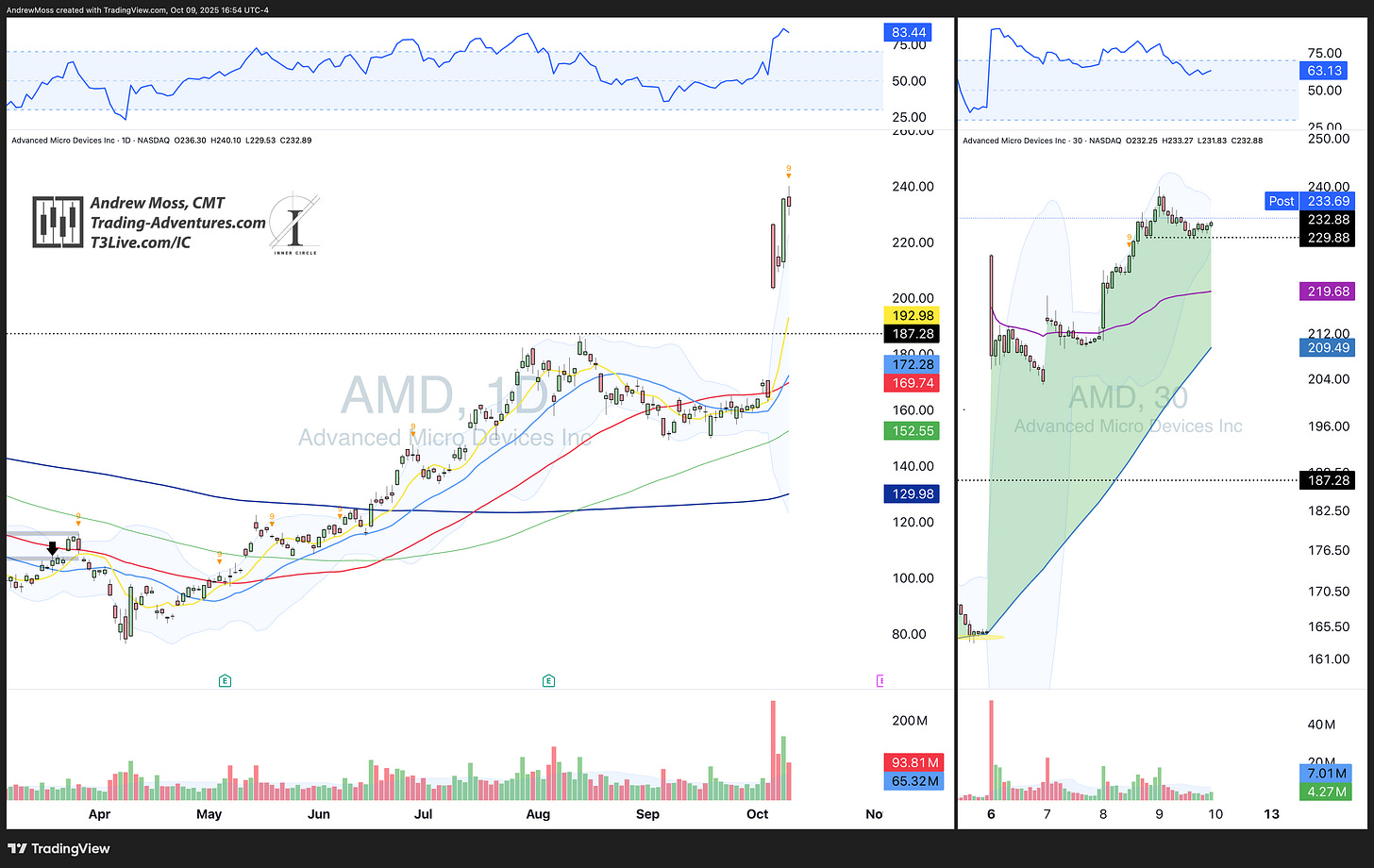 AMD dipped into the 229s, found support, and continued after-hours—leadership intact.