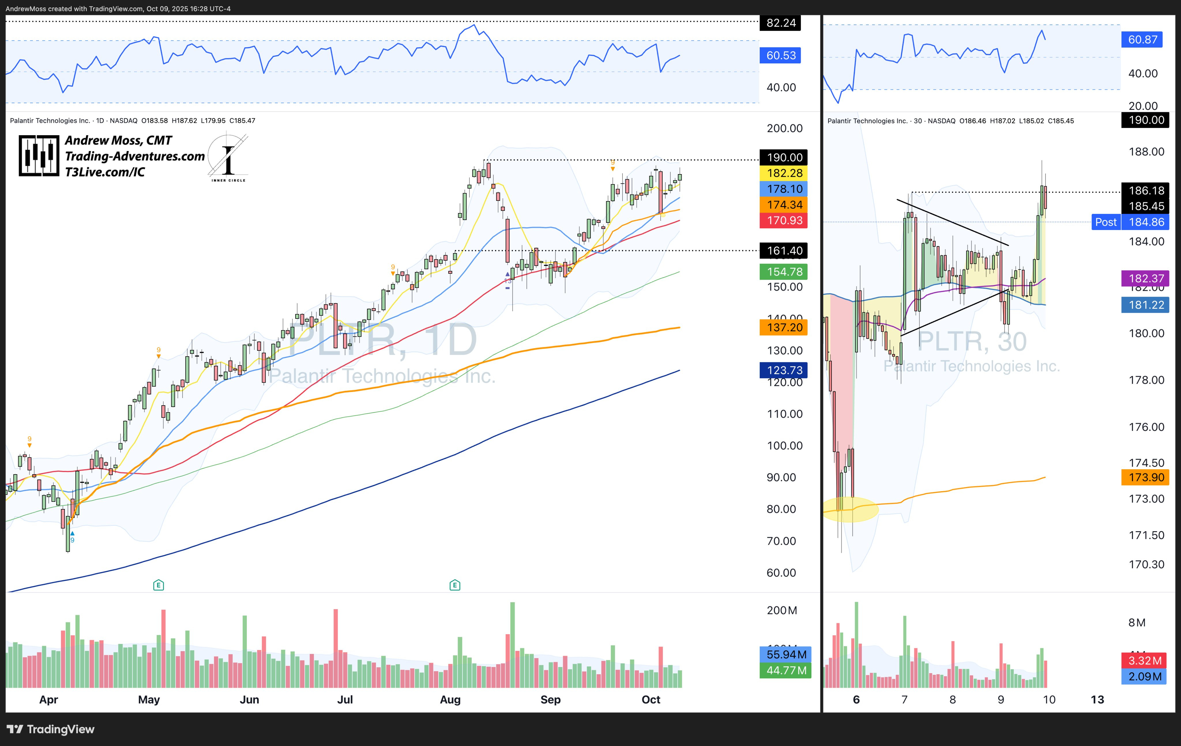 PLTR was messy intraday but held the 5-day on the retest and gave a very solid bounce before it closed mid-range in the 185s. Eyes on 190.