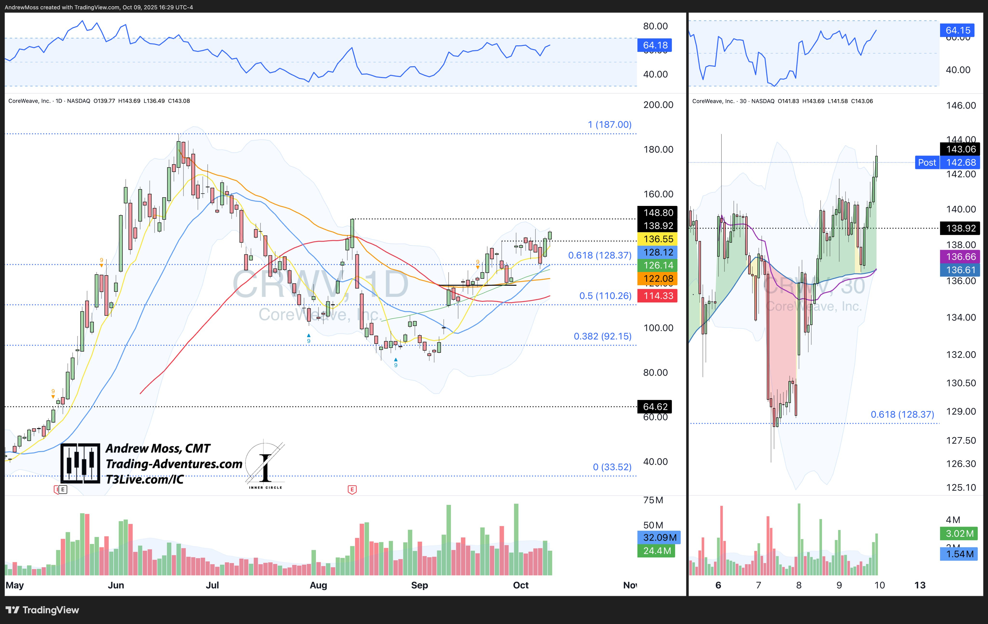 CRVW posted a strong day two above the 138.92 pivot; room toward 148–149.