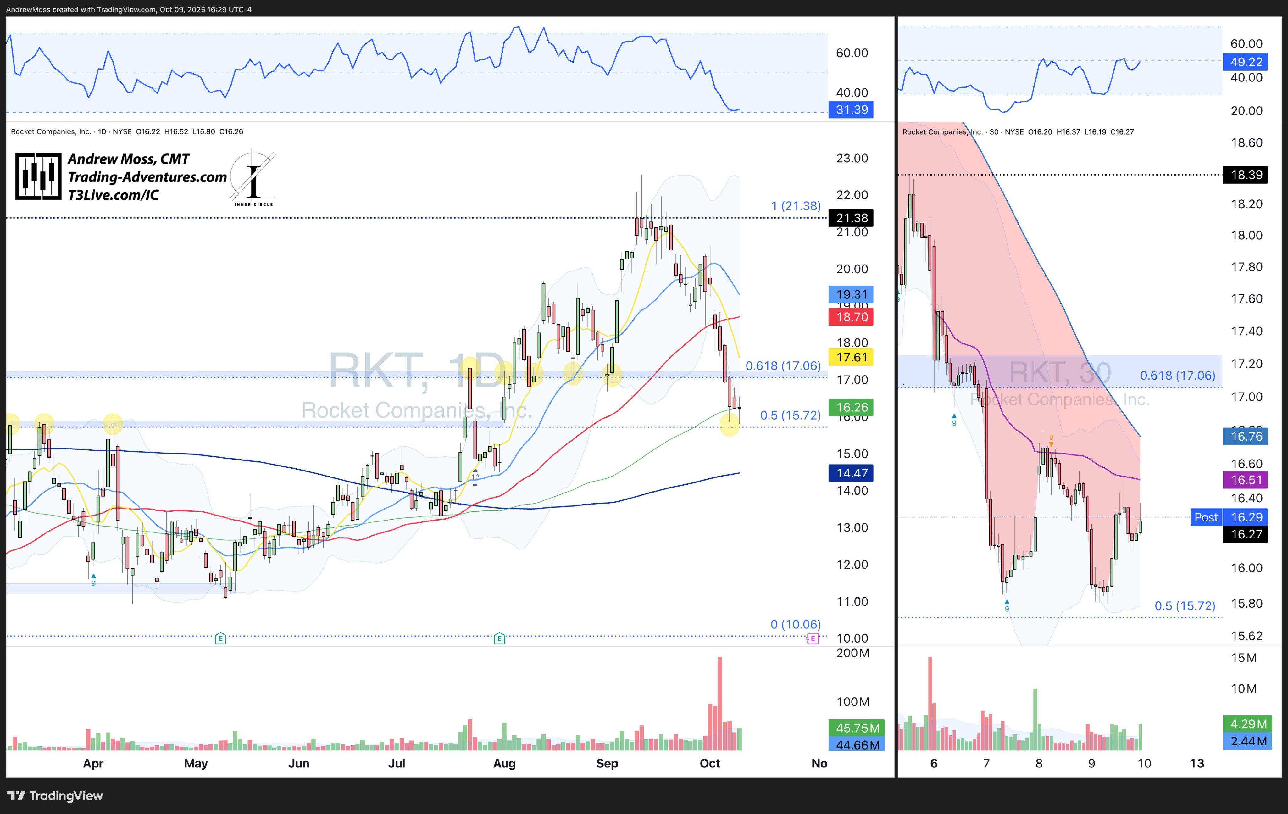 RKT double-bottomed near 15.72, bounced to WTD AVWAP resistance, and closed on the 100-day. It’s trying to put in a bottom. But watch for confirmation.