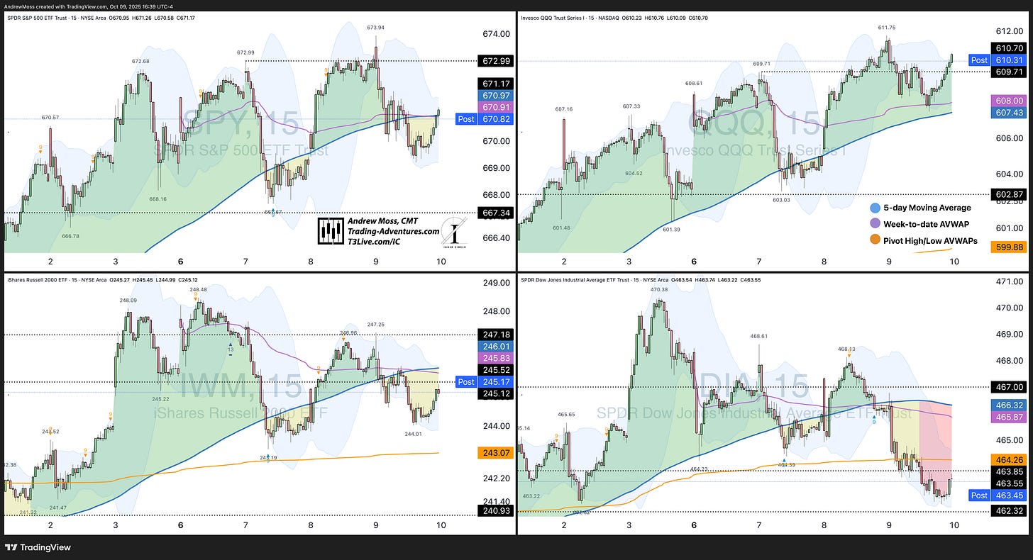 Indices and key tech reclaimed short-term levels and rallied into the close. Follow-through Friday will tell us if momentum carries or if this was just reflexive digestion.