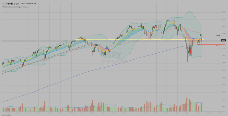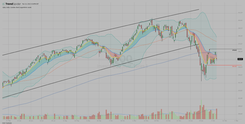 CPI data was announced this morning and the market did not like it. At 7.5%, it was the highest report since February of 1982. Things sold off quickly and kept heading lower before bouncing at the open. $IWM was the first to go green. Then $DIA did as well. $SPY made it into positive territory for a very brief moment but $QQQ never did.