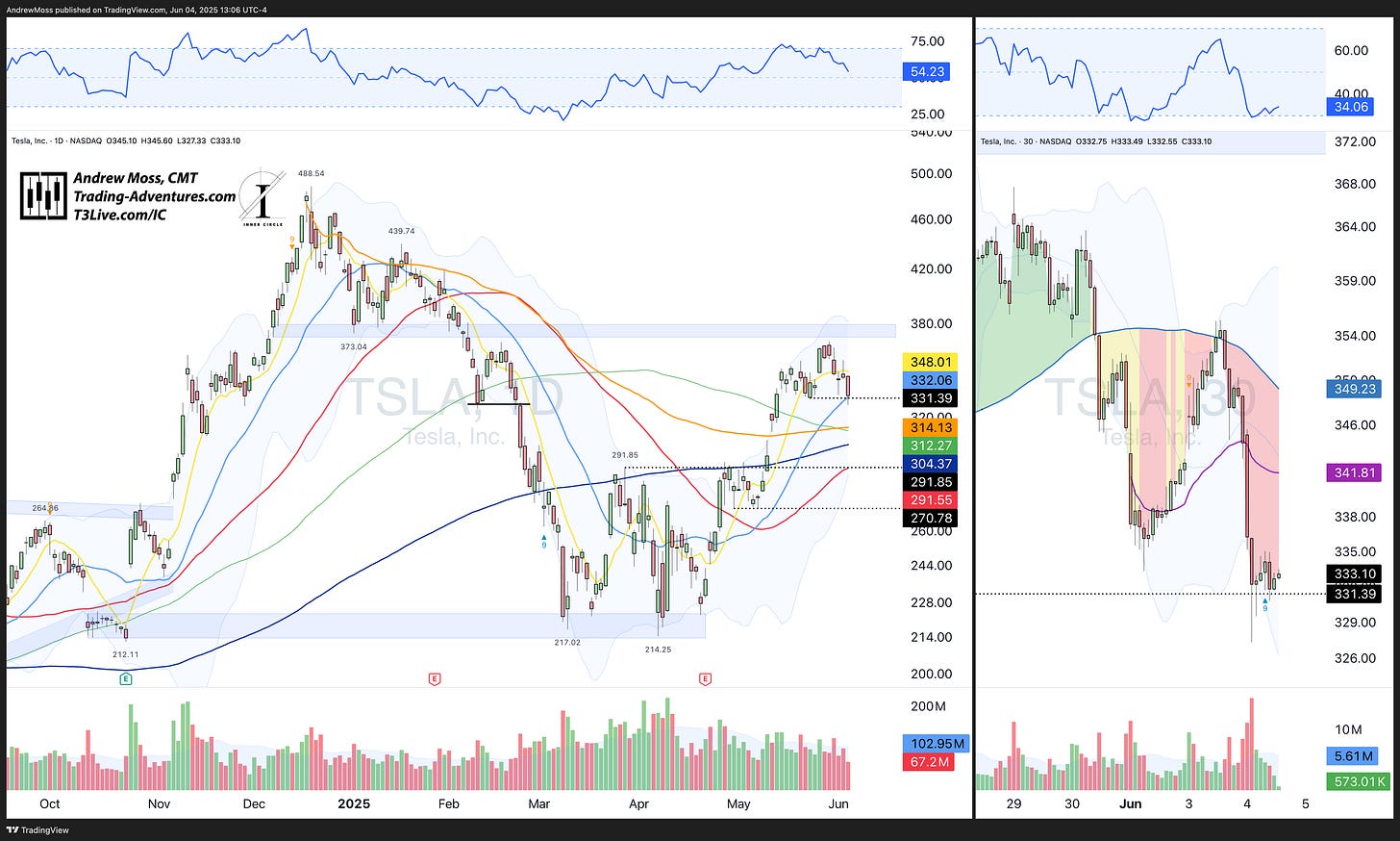 As of today, June 4, TSLA is back to test the $331 level for potential horizontal support.