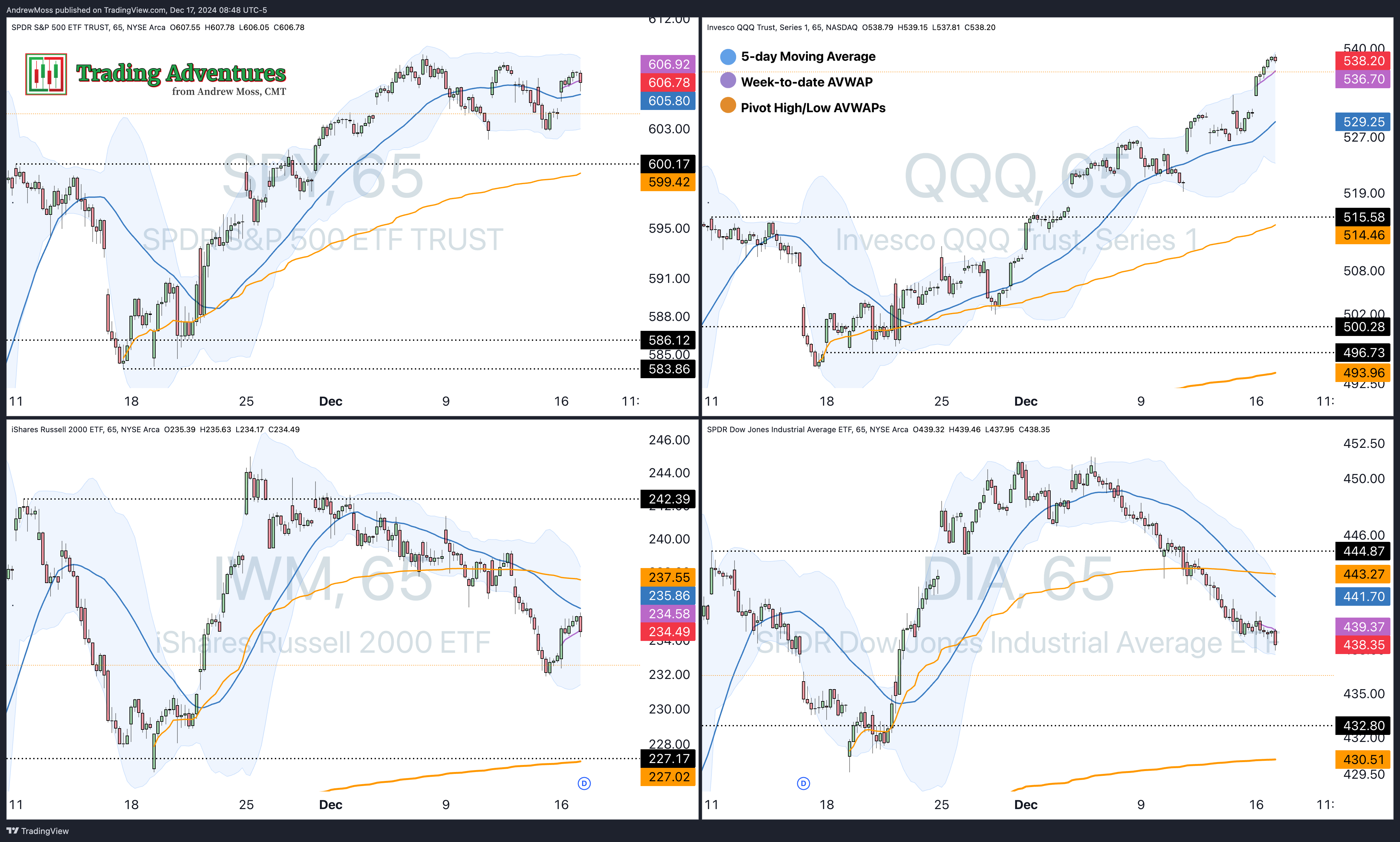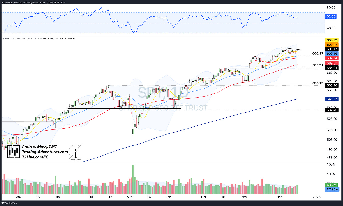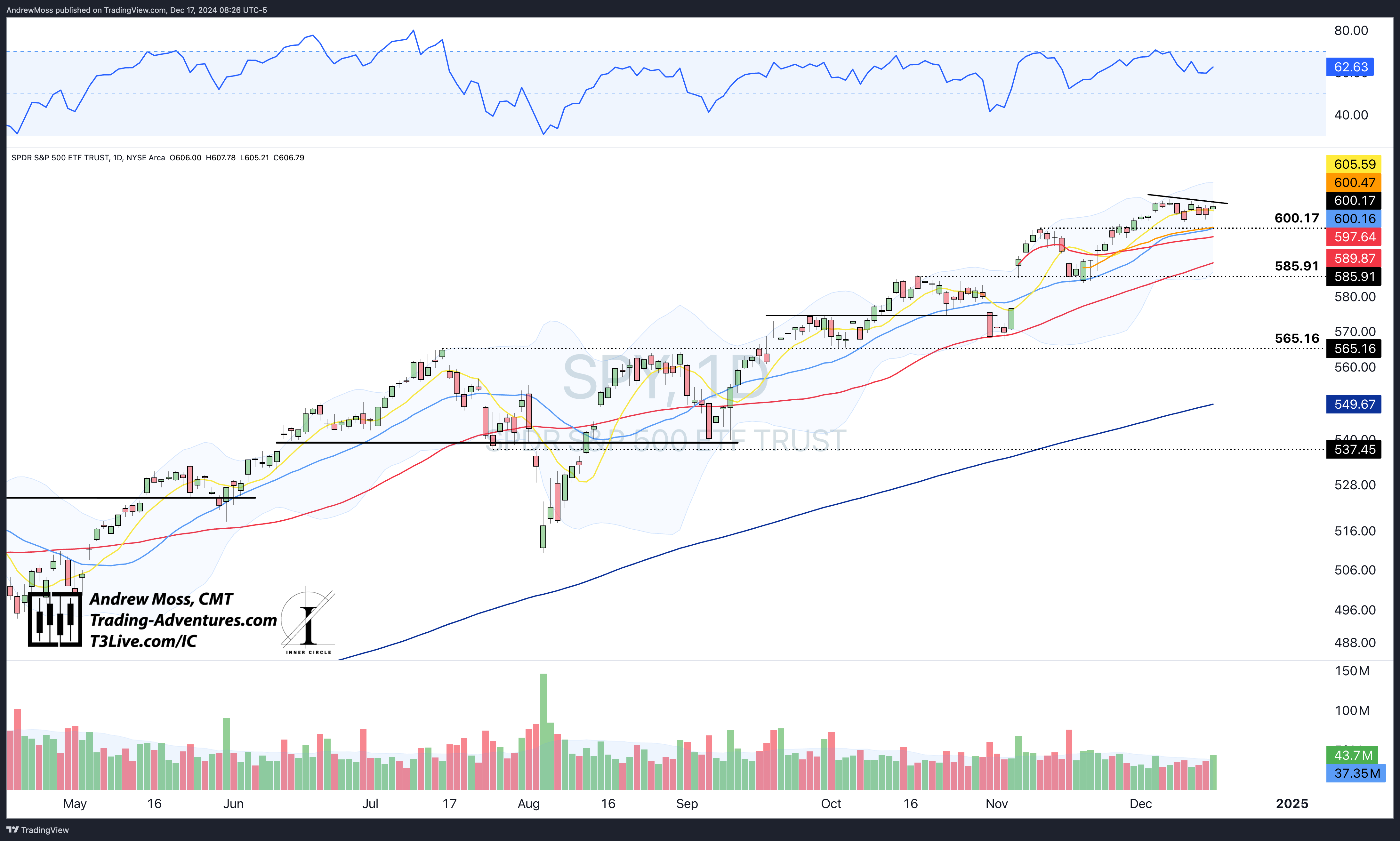 Below, the already significant support area near $600 continues to build as the 21-day MA and a couple of AVWAPs gather there.