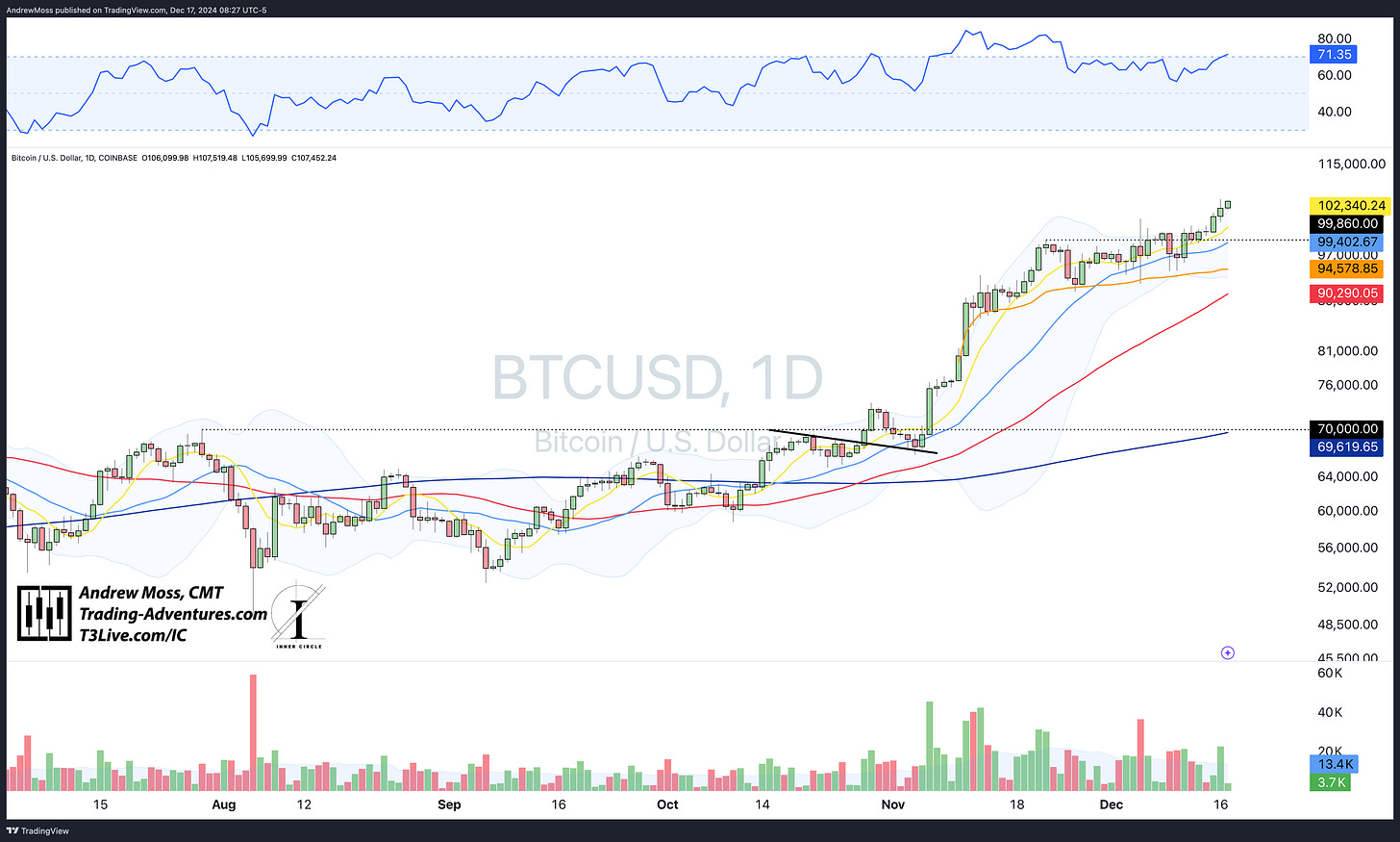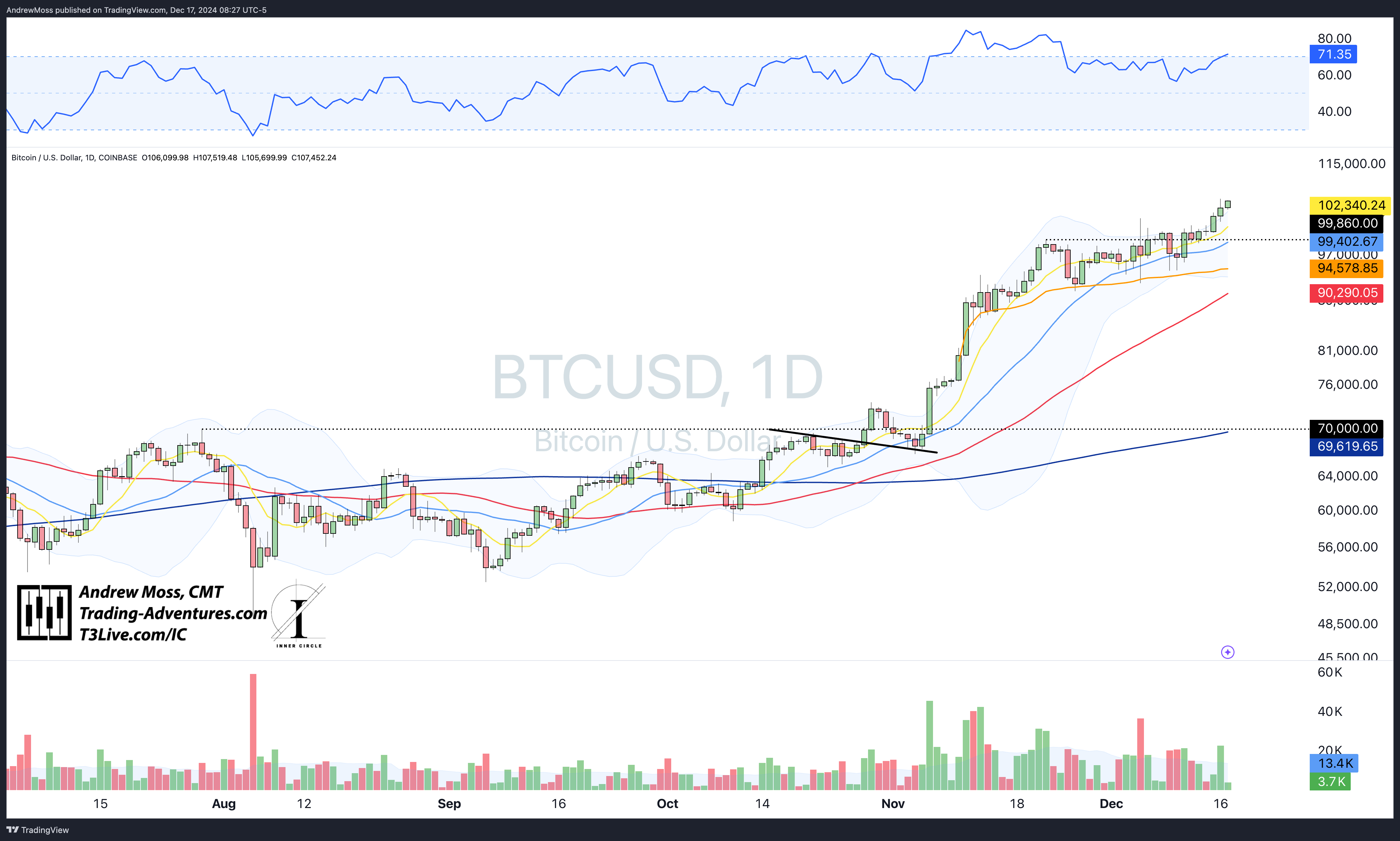 BTCUSD makes new highs again, trading above $107,000 this morning.