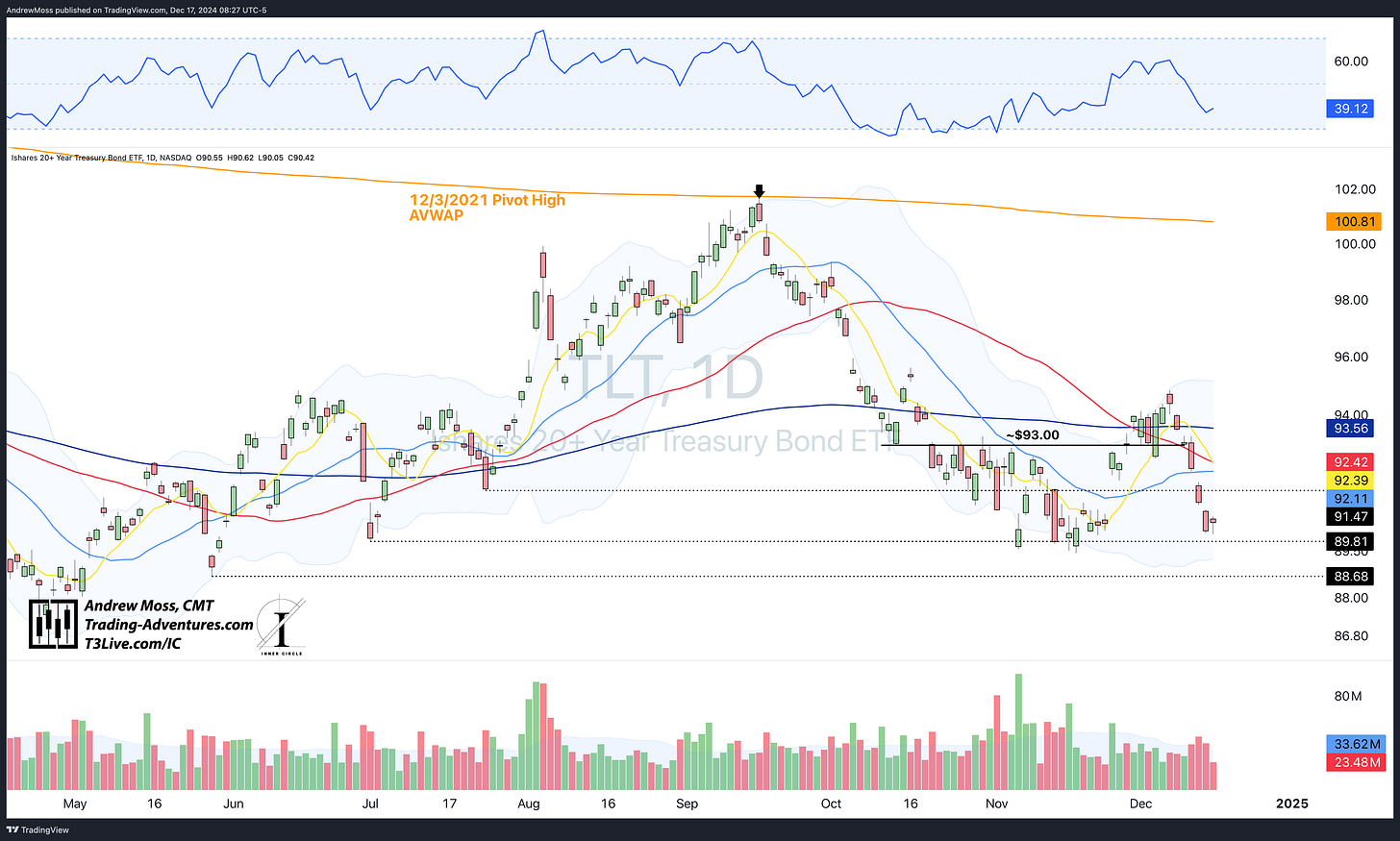 TLT has entirely given back the recent rally and once again we’re left to watch the ~$90 area for potential support.