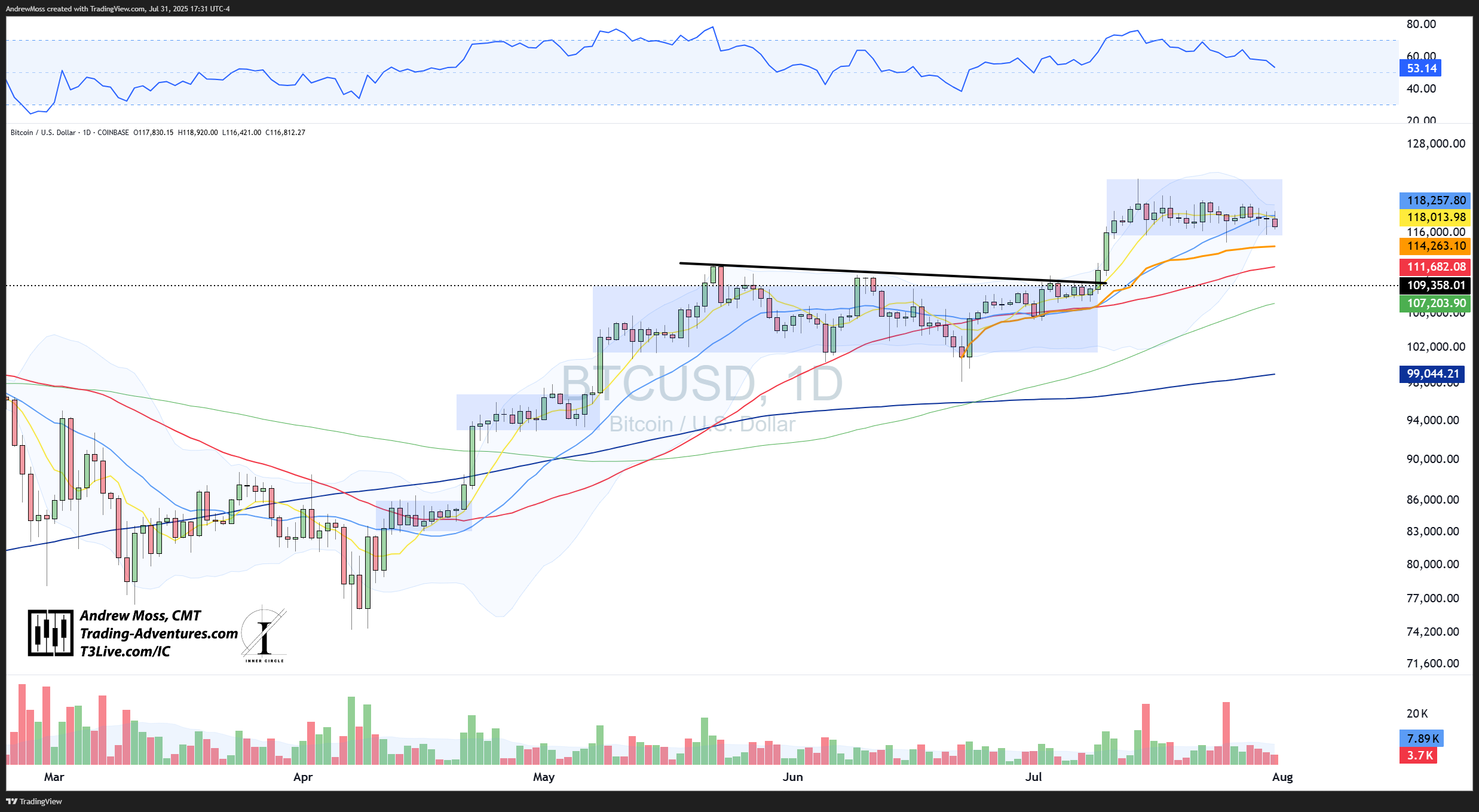 BTCUSD remains flat but not broken. Tech leadership is working, but crypto is currently sidelined.