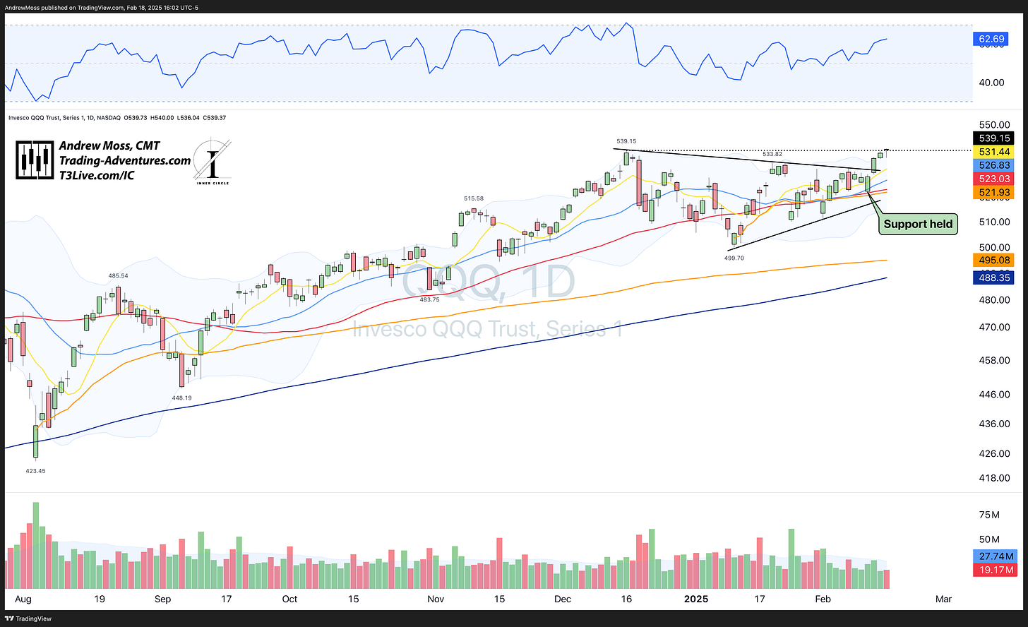 QQQ did it, too, closing above the Dec. pivot high and logging a new all-time daily closing high.