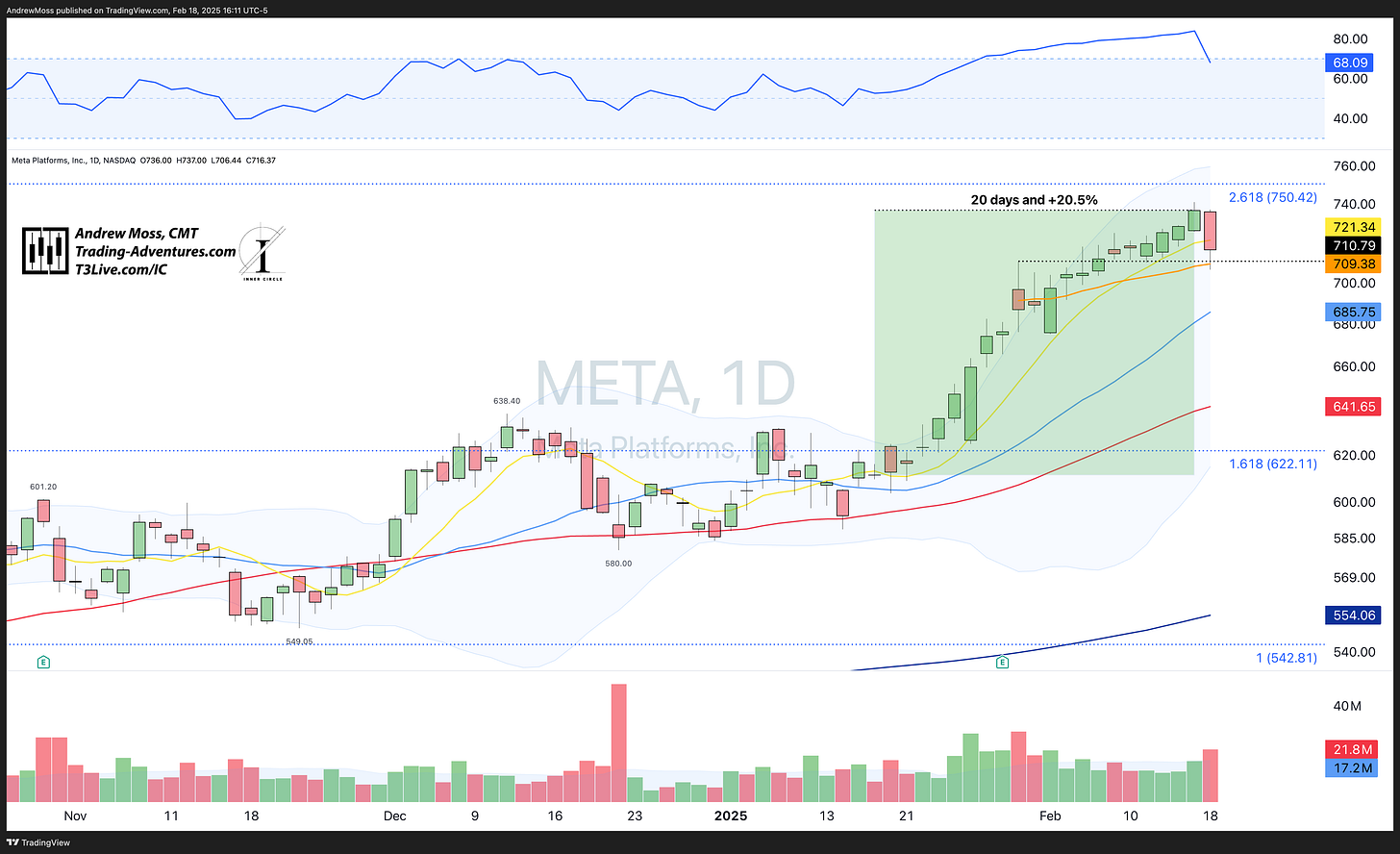 META snaps the streak with a selloff day that wipes out the last six days of gains.