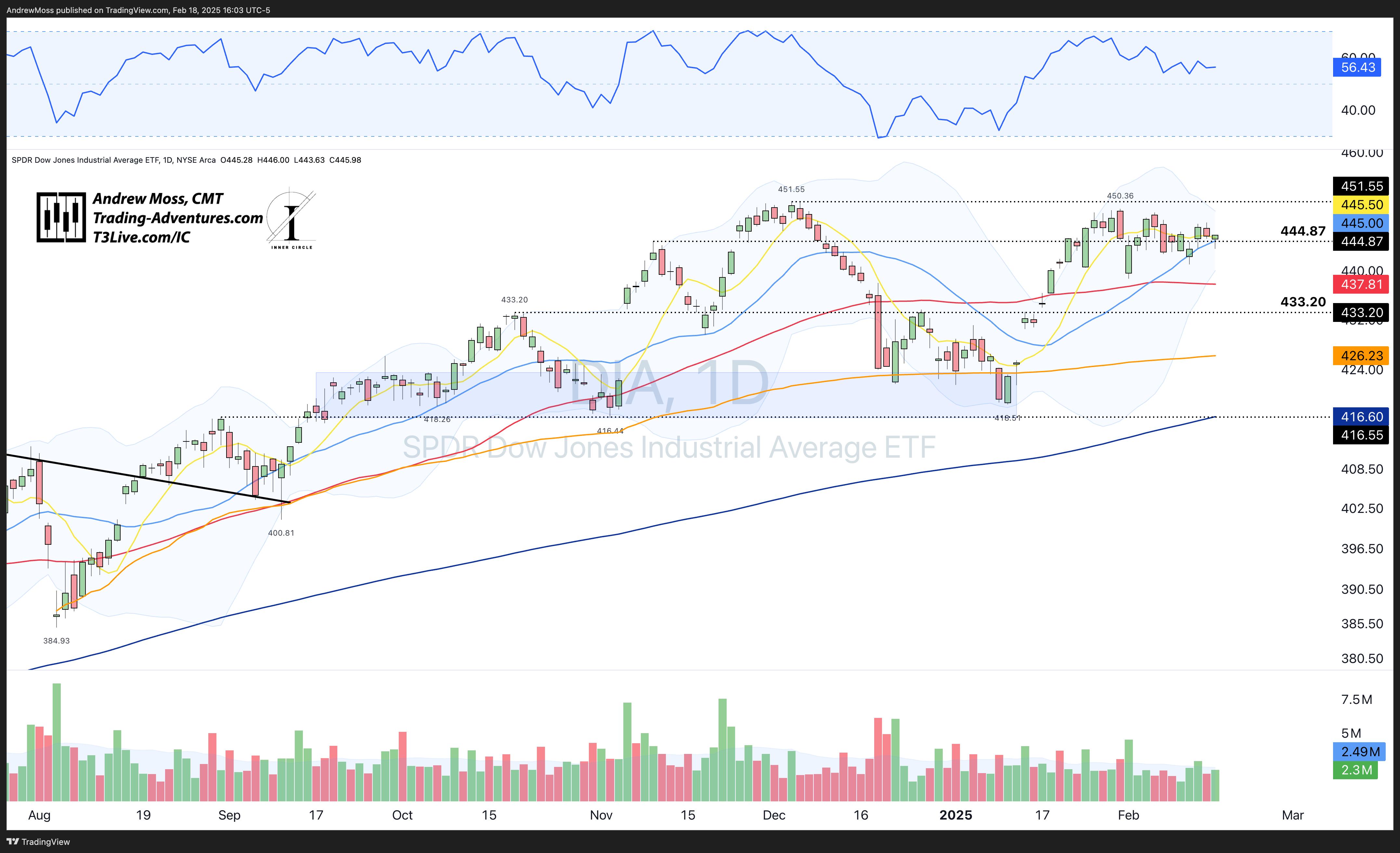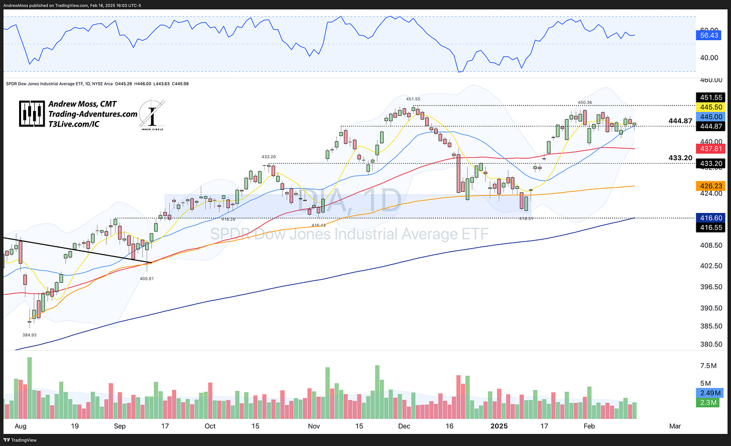 DIA is parked on its 8 and 21-day MAs to start the week.