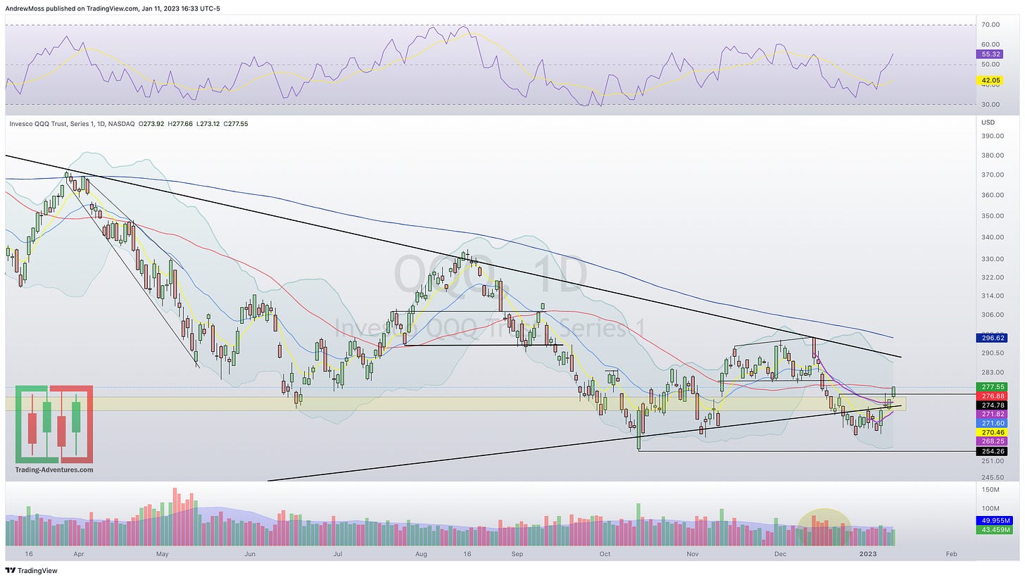 QQQ — pushed above the pivots and into its 50-day MA.