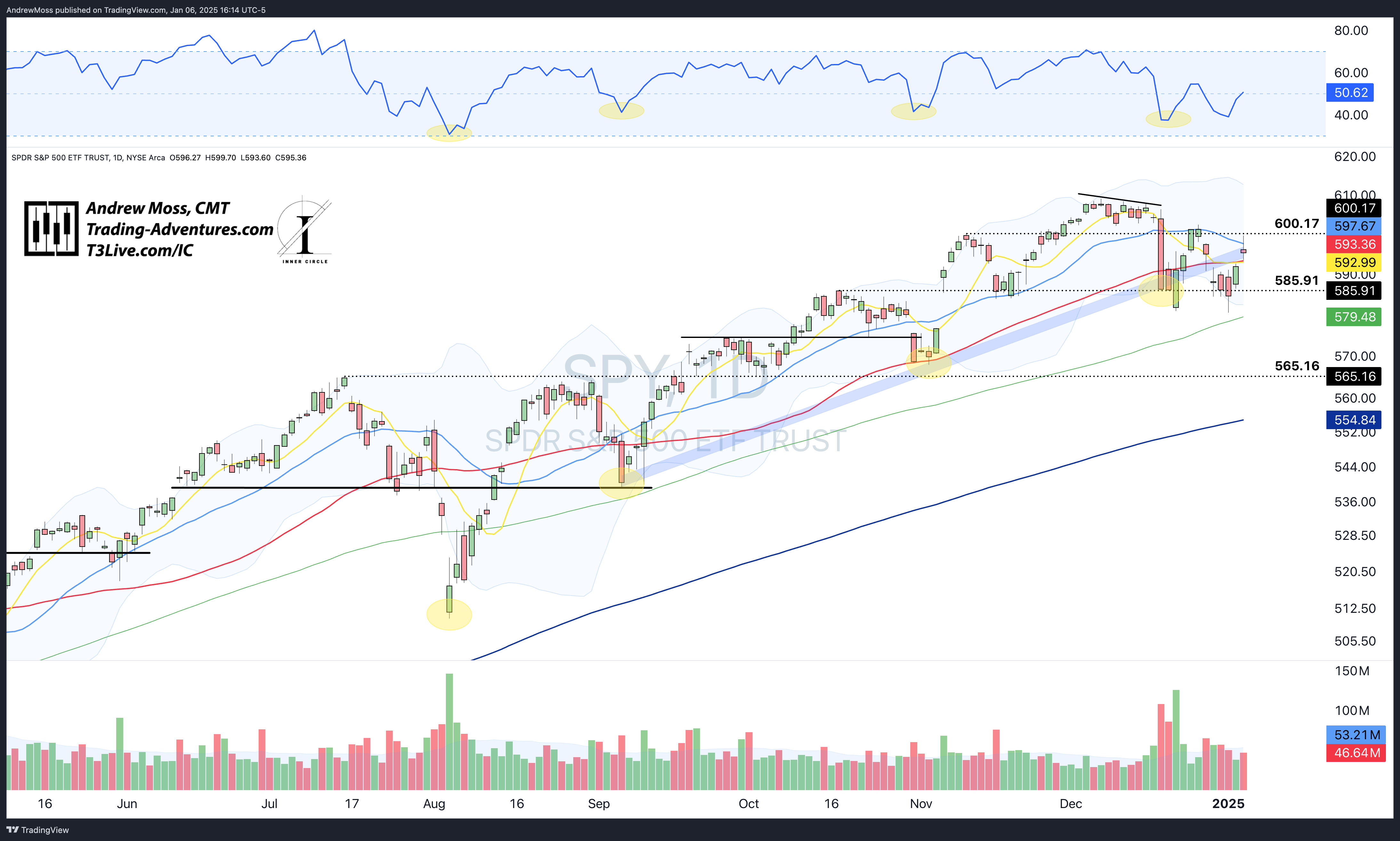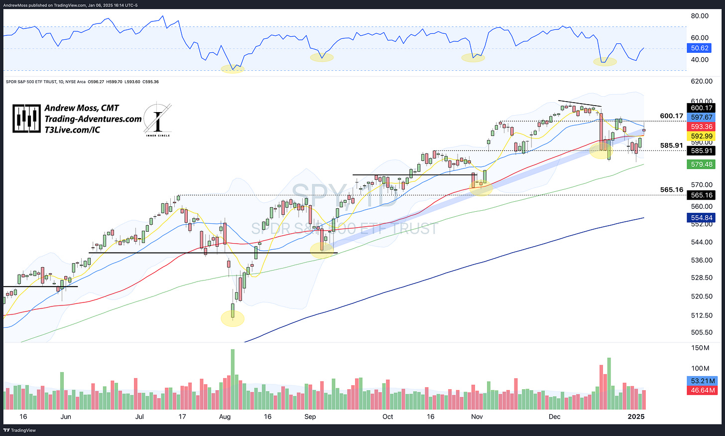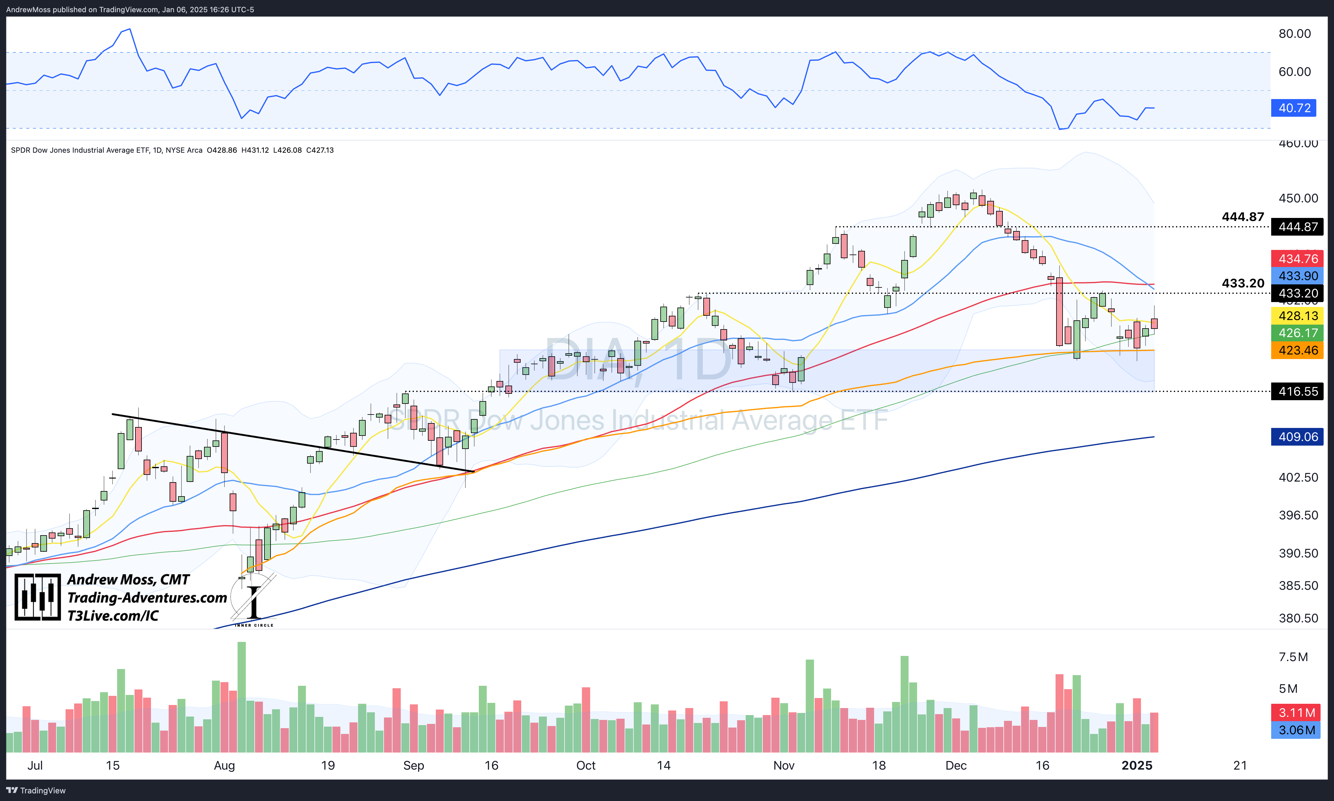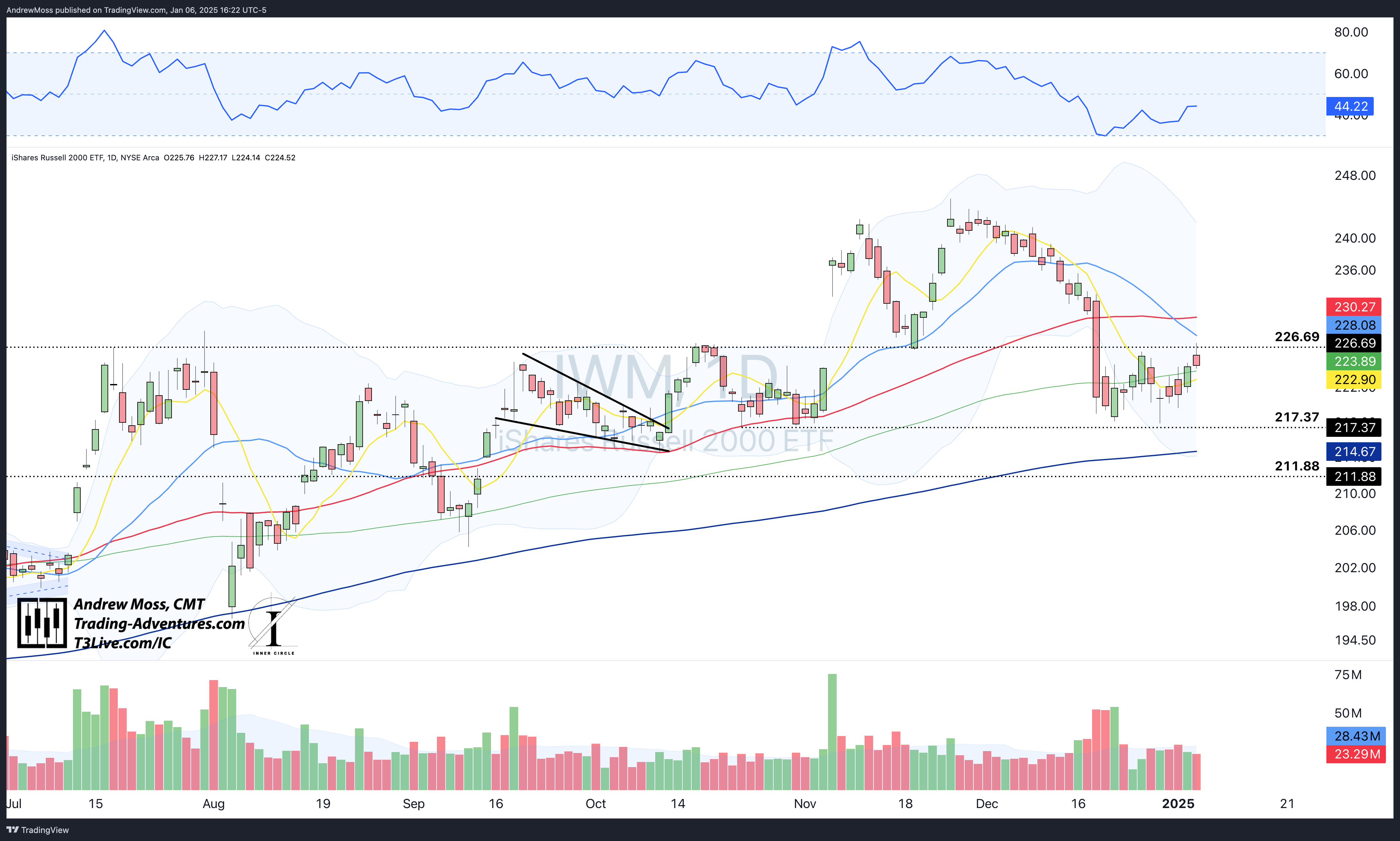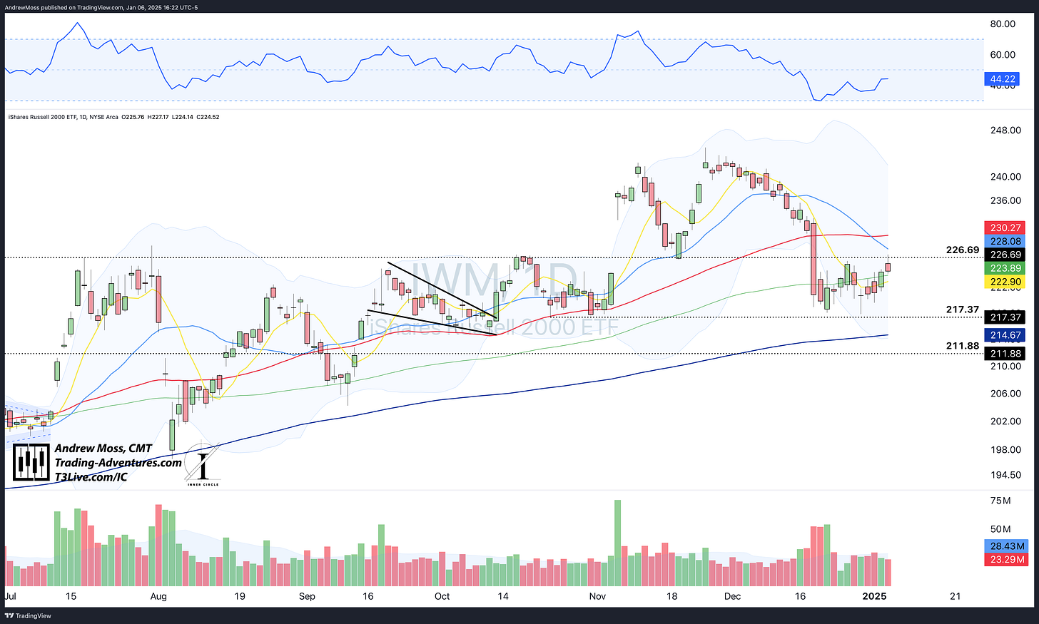 NVDA was a bright spot today as it notched a new all-time closing high with CEO Jensen Huang opened the Consumer Electronics Show (CES). As price breaks out, RSI moves up, and volume outpaces the daily average. Could this be the start of a move to ~$230? So far, it's checking off the boxes of the criteria listed in the 2025 Outlook.