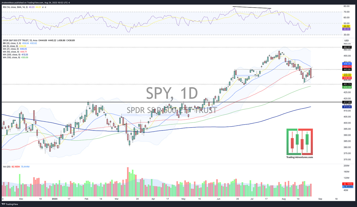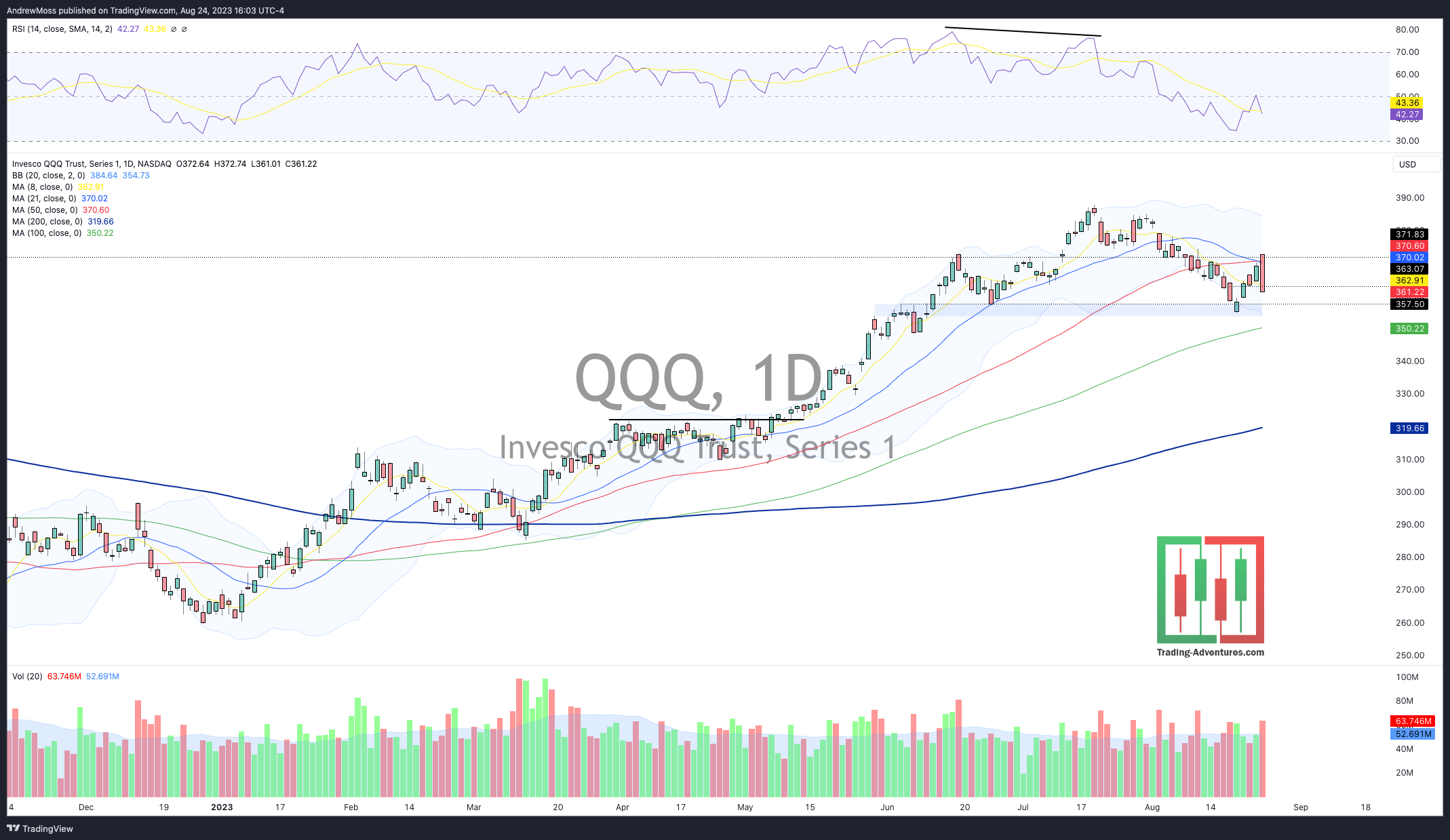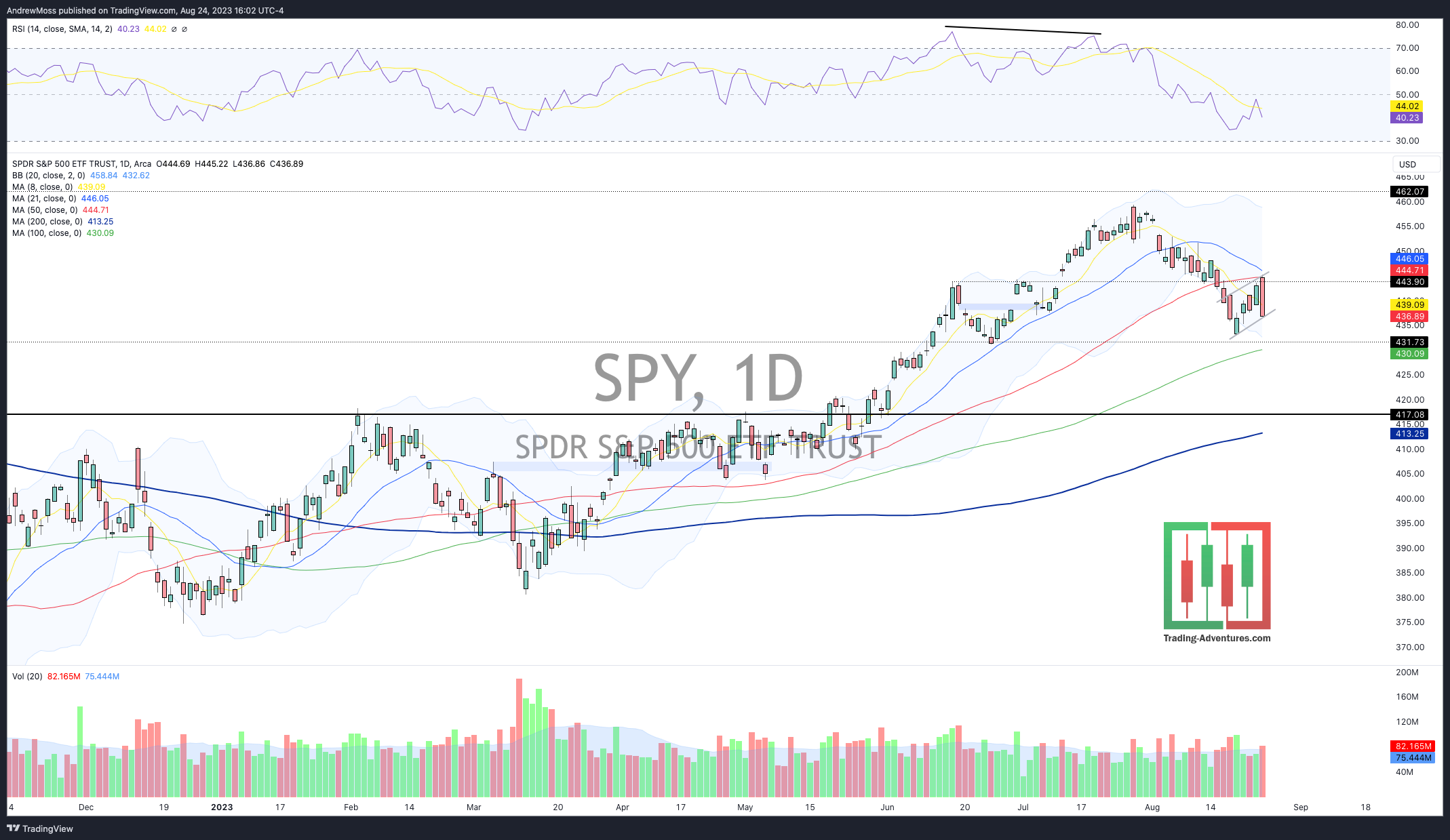 The rest of the market moved lower as well and a ‘risk-off’ mood spread throughout the day. That is likely due to apprehension about what Jerome Powell may say tomorrow in Jackson Hole. Last year his comments sent the SP 500 lower by more than 3%.
