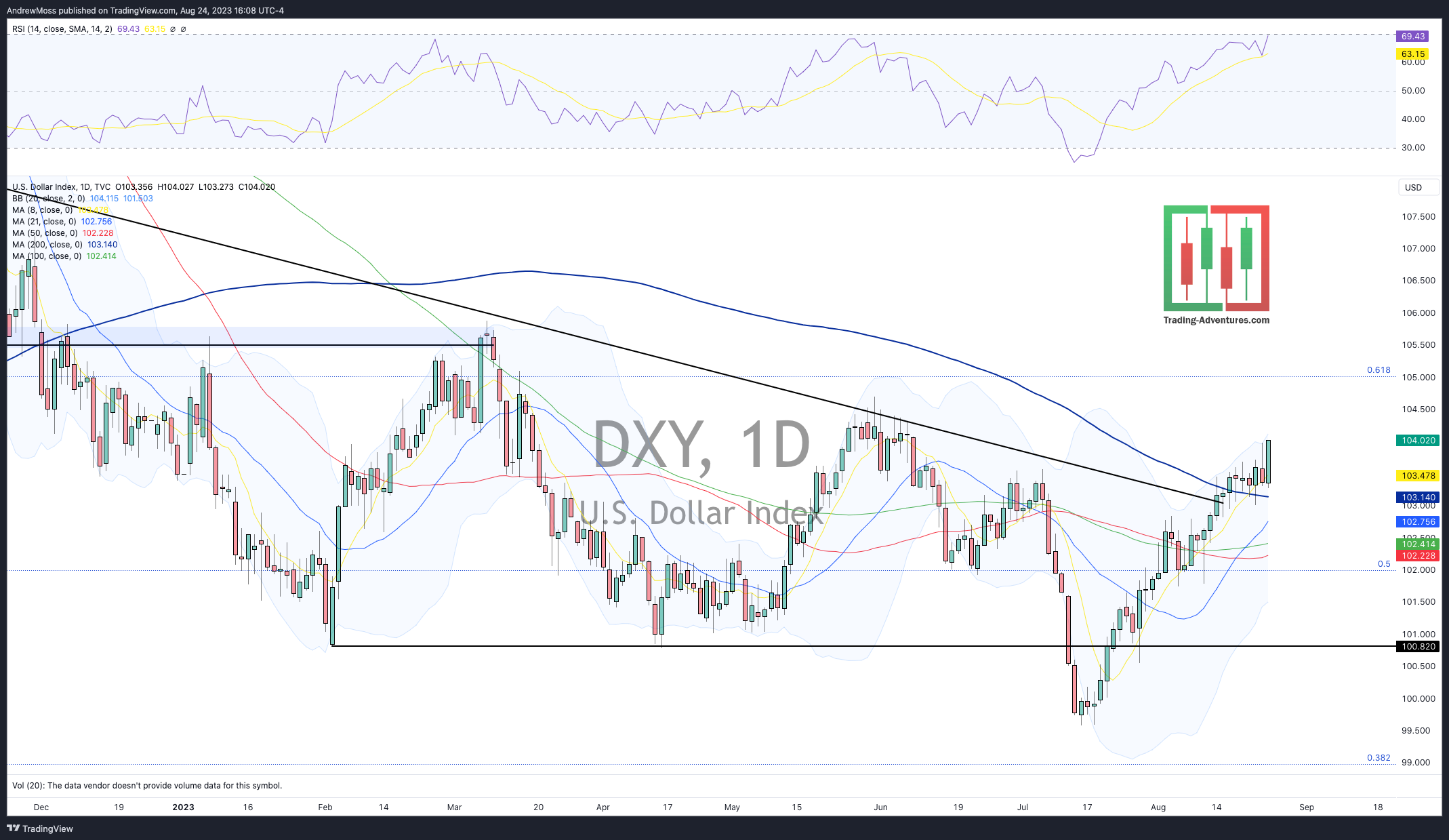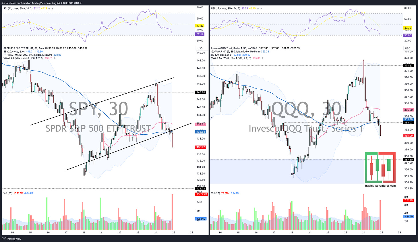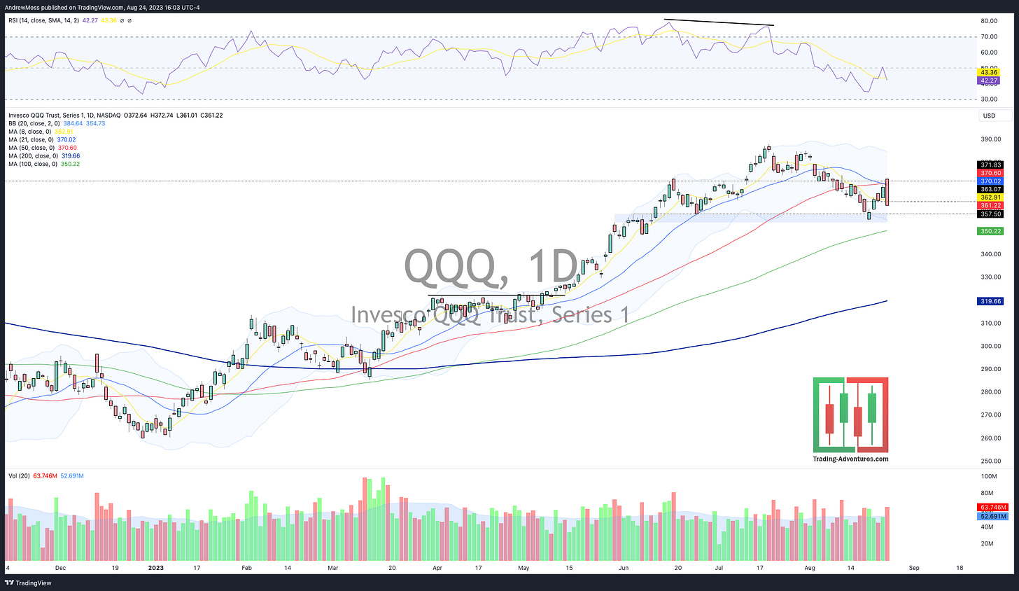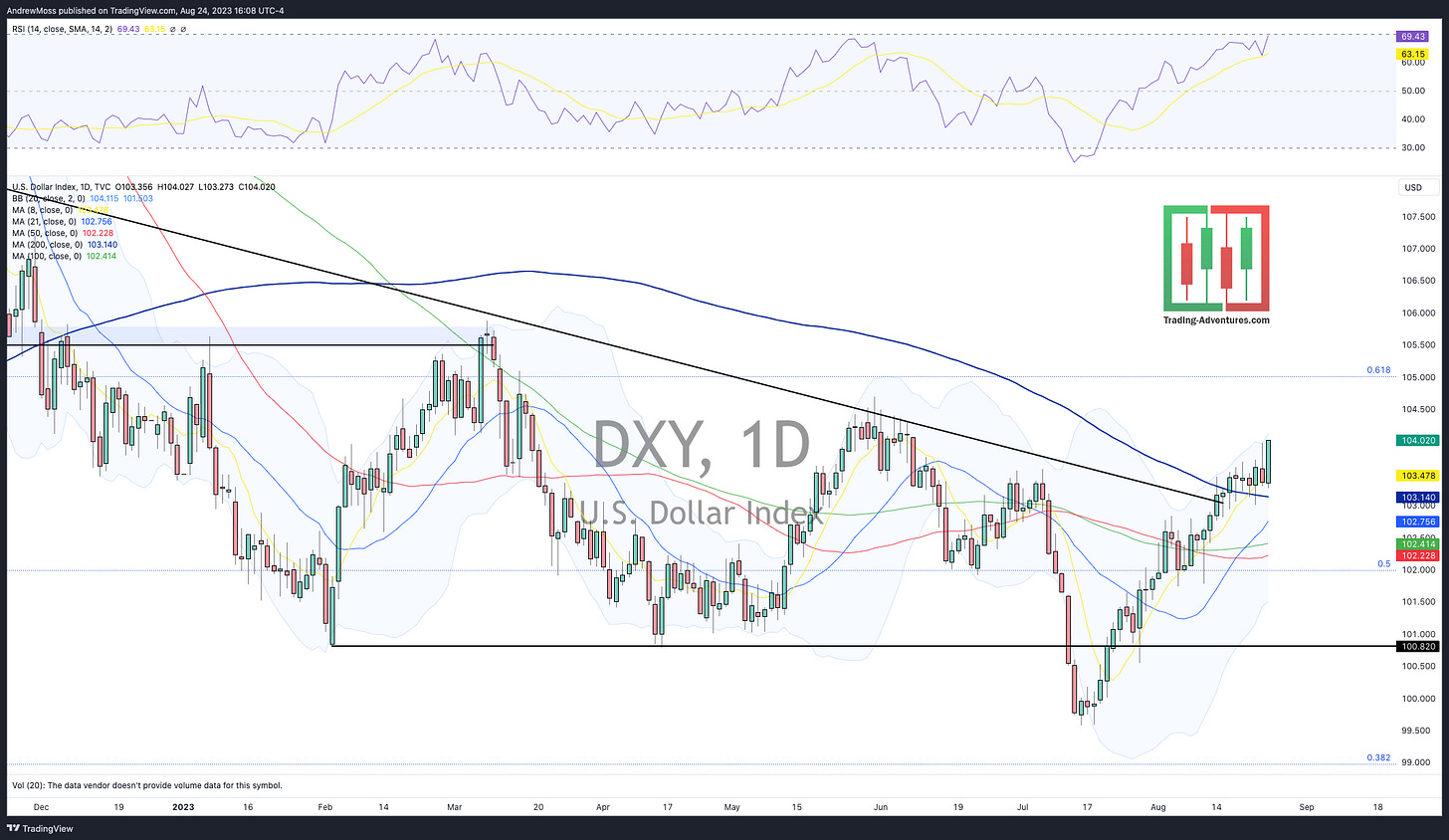 The rest of the market moved lower as well and a ‘risk-off’ mood spread throughout the day. That is likely due to apprehension about what Jerome Powell may say tomorrow in Jackson Hole. Last year his comments sent the SP 500 lower by more than 3%.