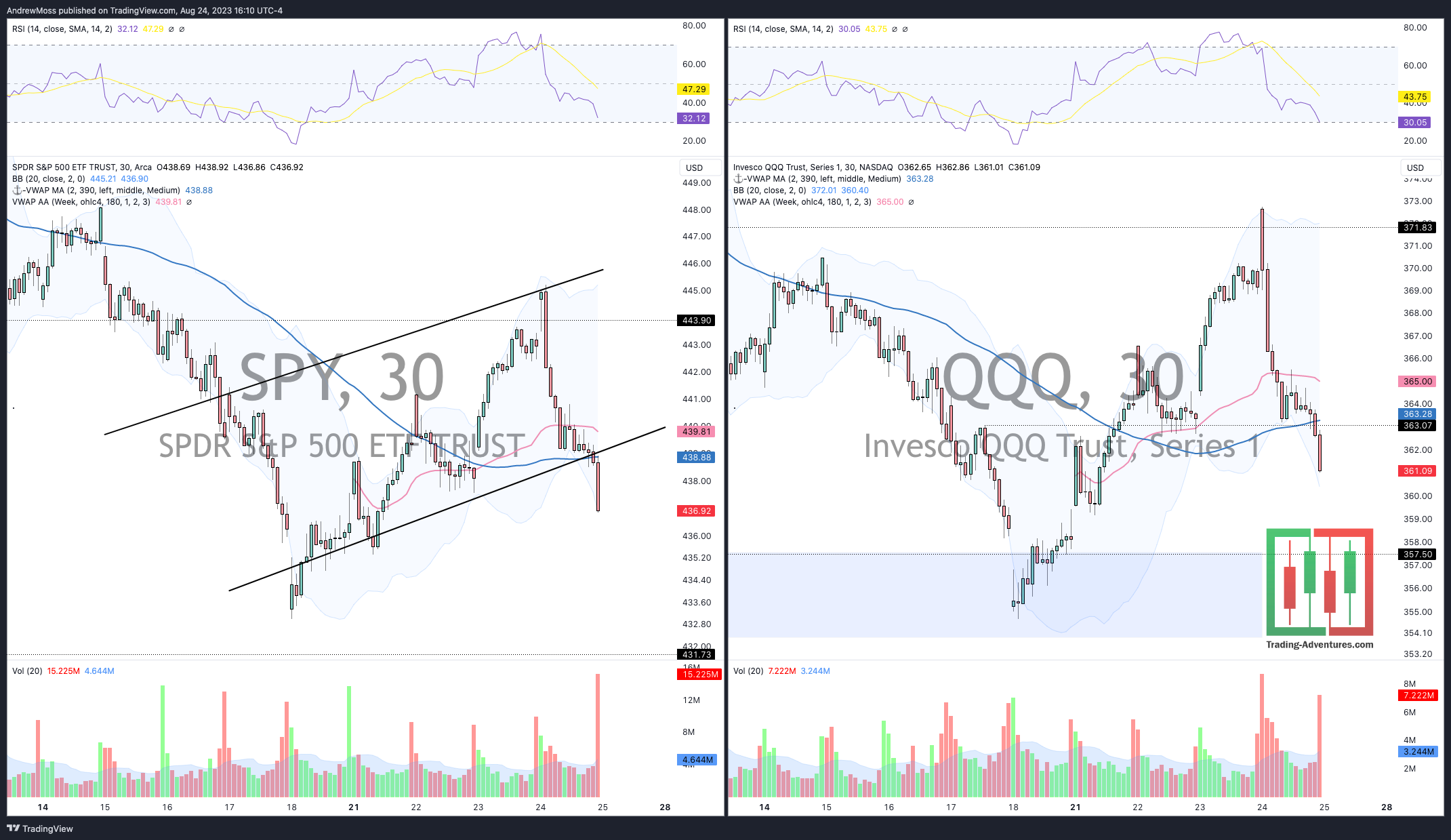 Now today’s action has both SPY and QQQ back below that level. Tricky environment.