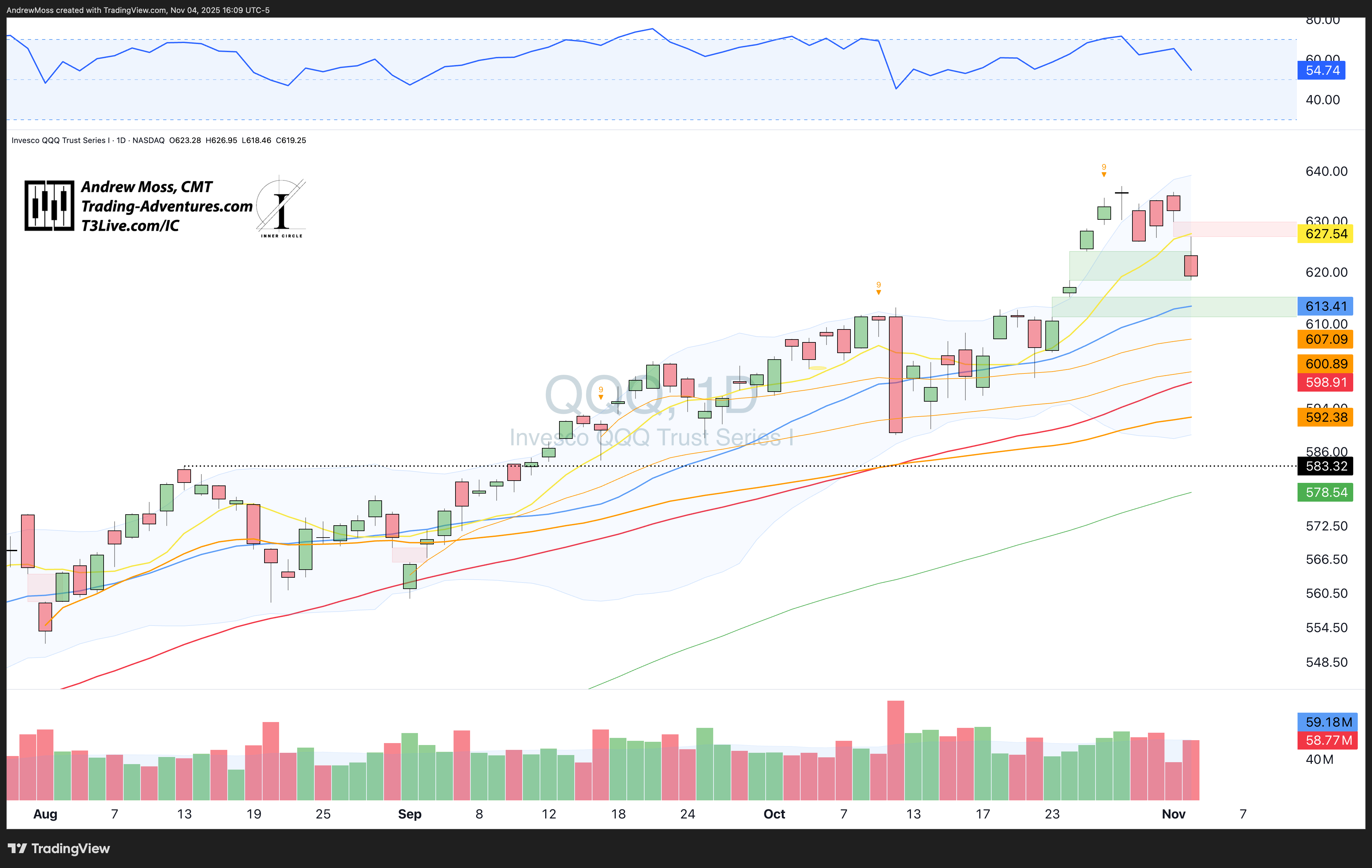 QQQ gapped higher but closed well off the highs, forming a potential shooting star—now getting confirmed.