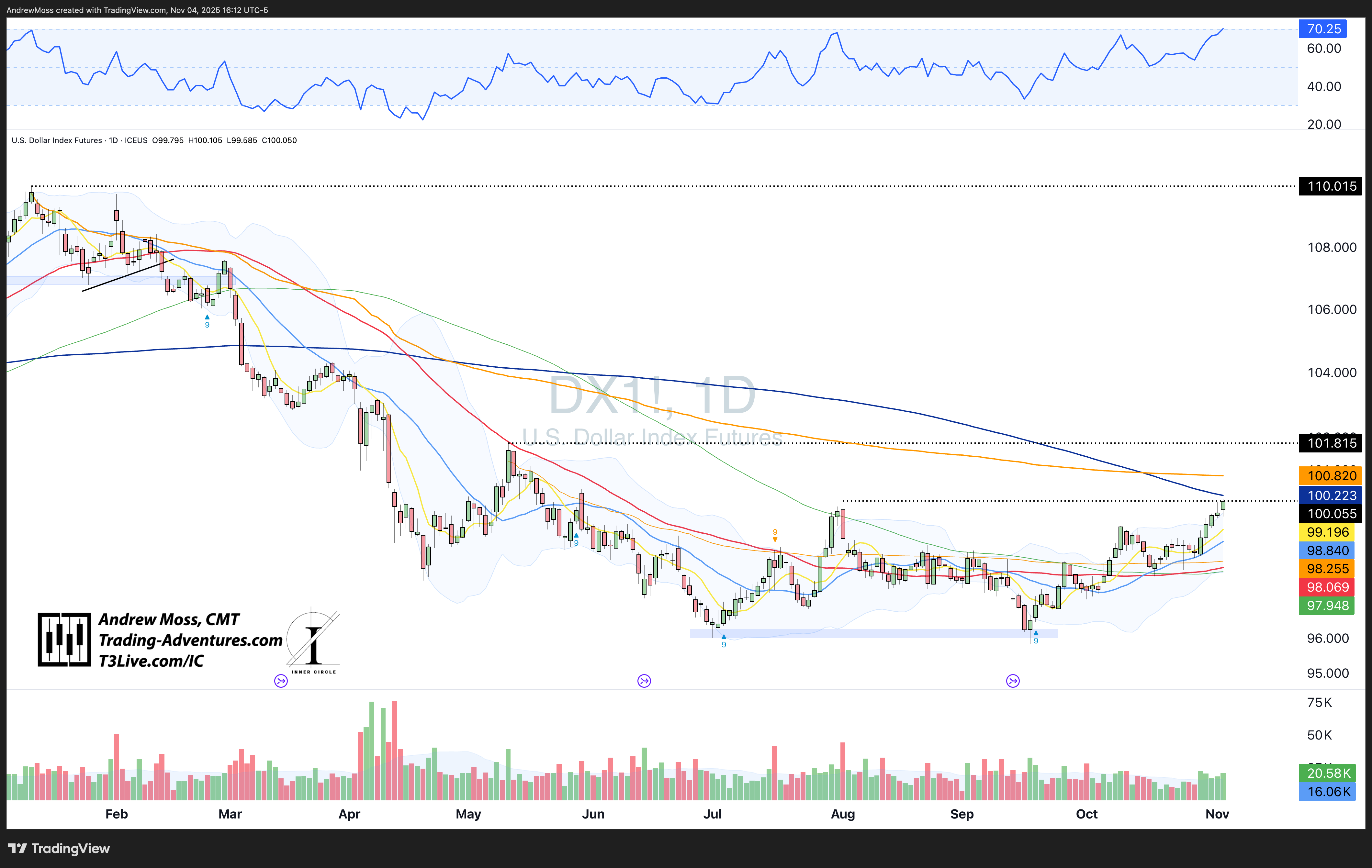 DXY meanwhile, continues to climb, now nearly testing the $100.055 pivot and 200-day MA.
