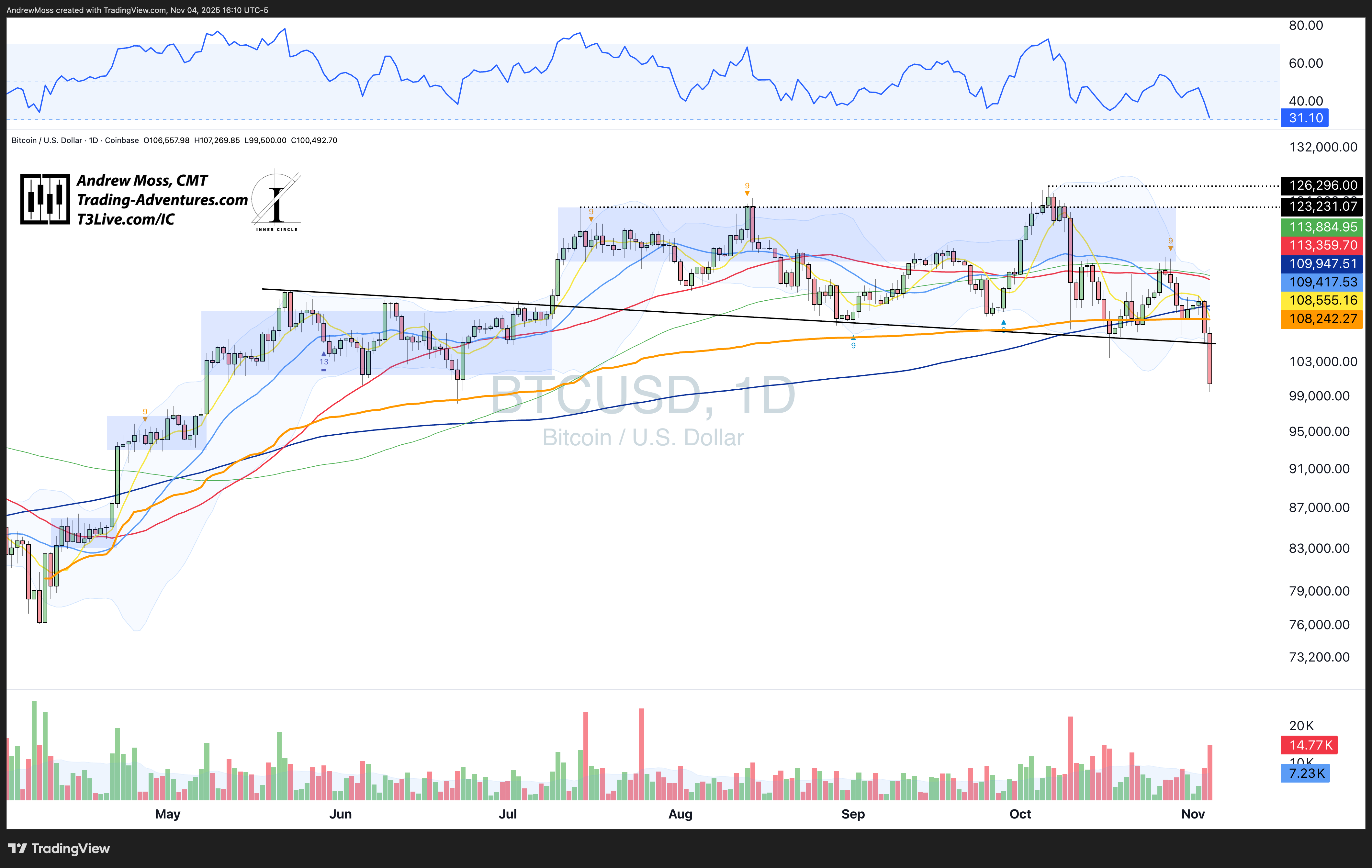 Heavy selling hits risk assets, but major indexes hold key levels. Selectivity and structure take the lead.