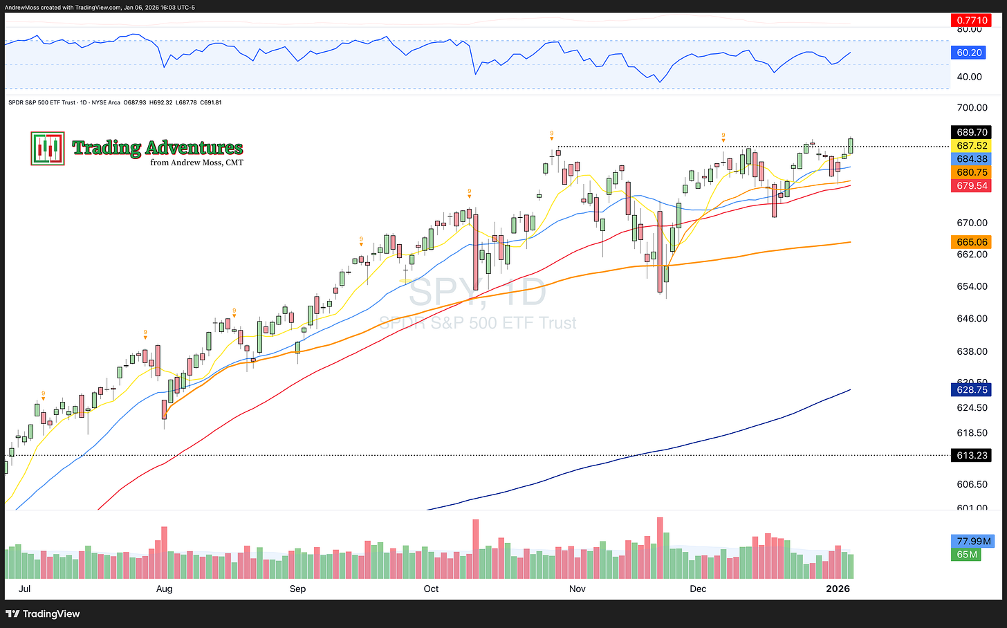 SPY moved beyond the October 2024 high to make fresh new all time closing high.
