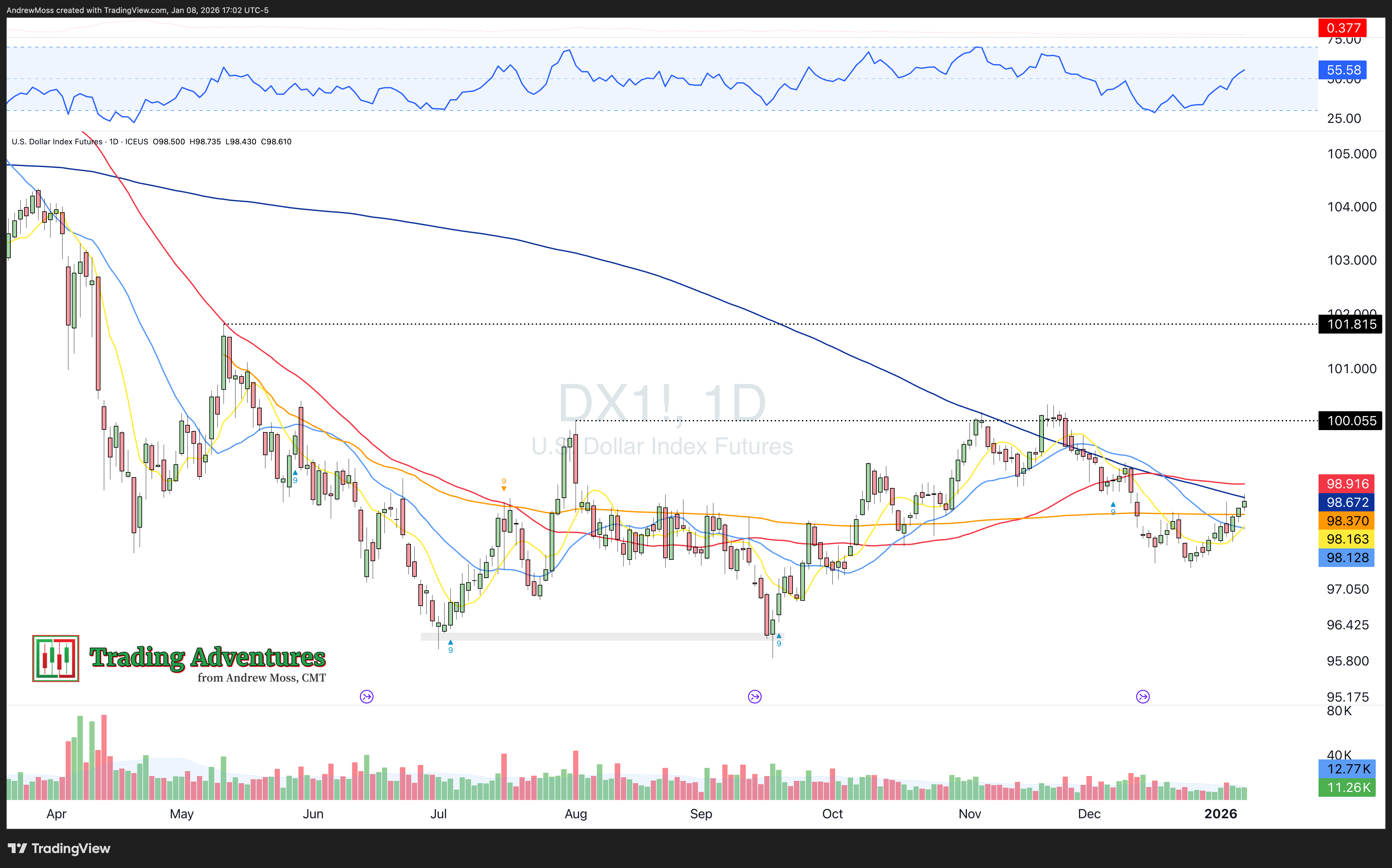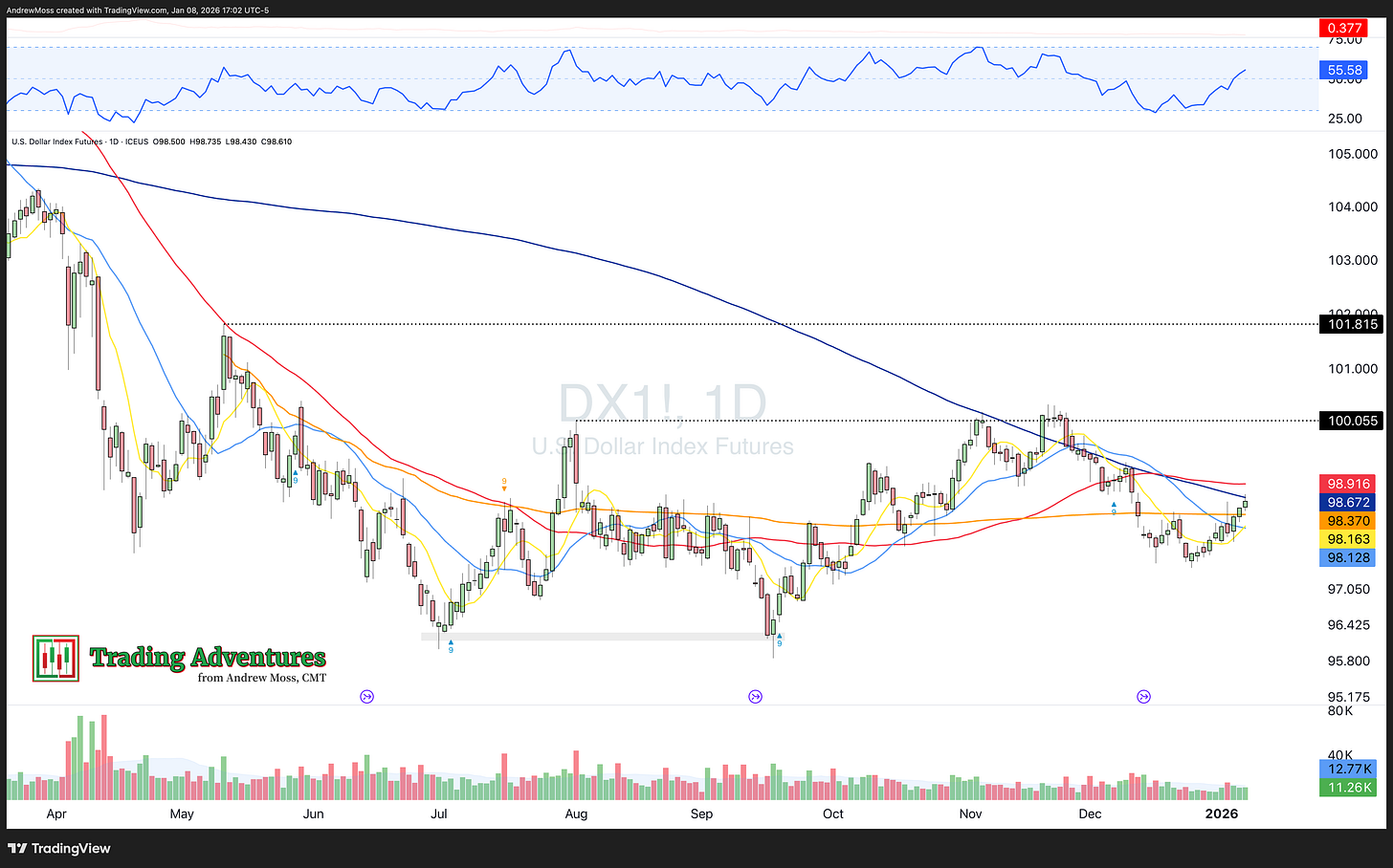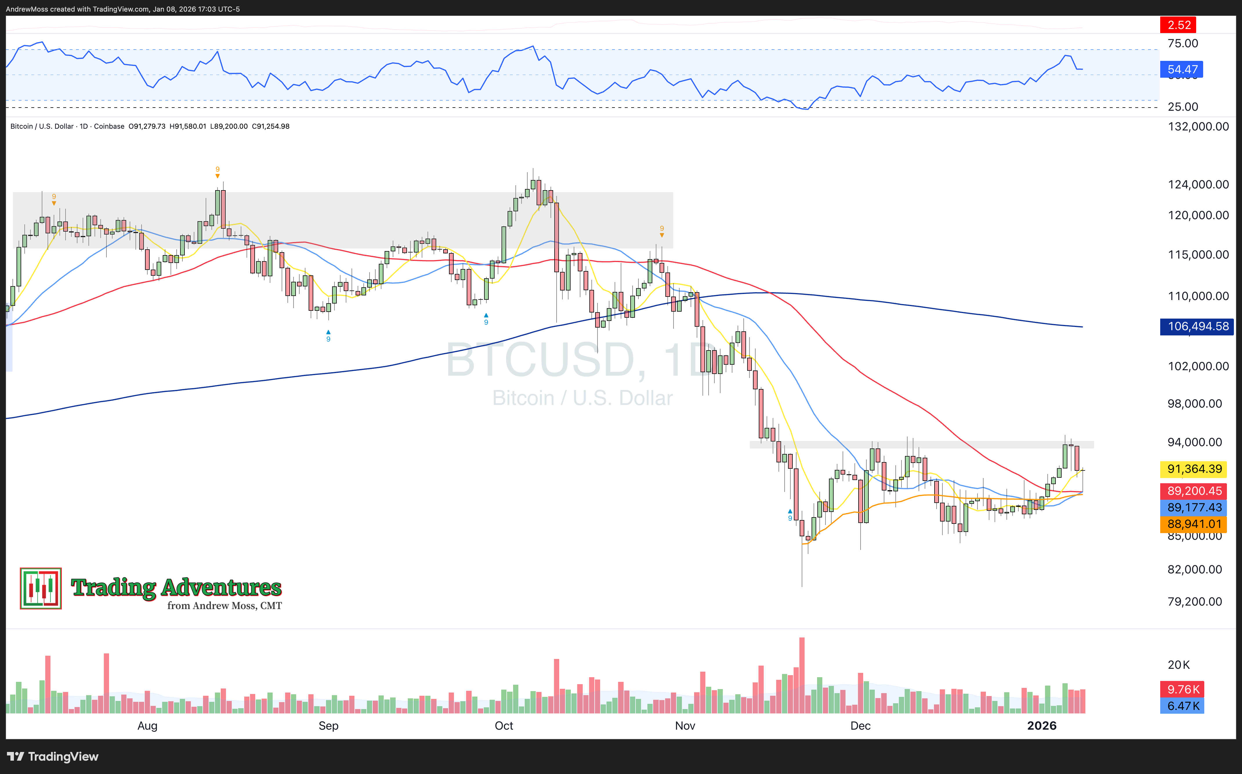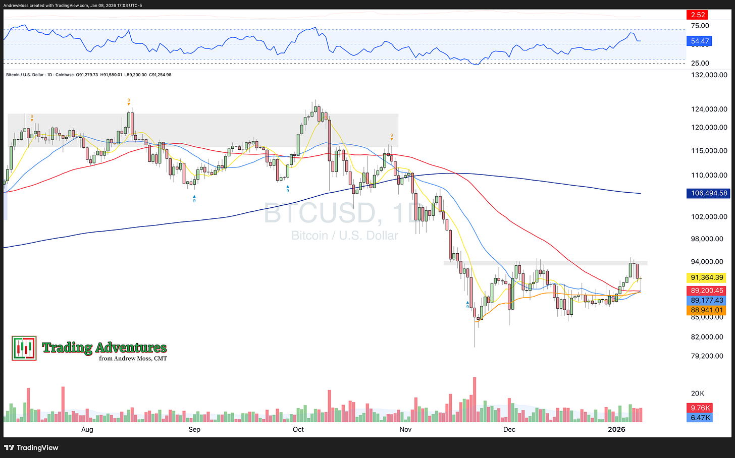 As long as price holds above that area—and the moving averages—the trend remains intact. If it starts to build higher lows above that zone, the next leg higher becomes more likely with risk being defined against the breakout level.
