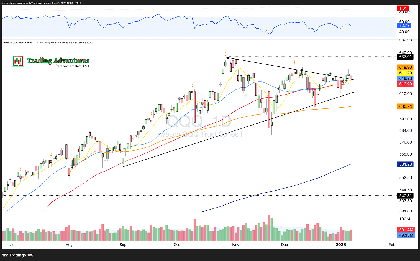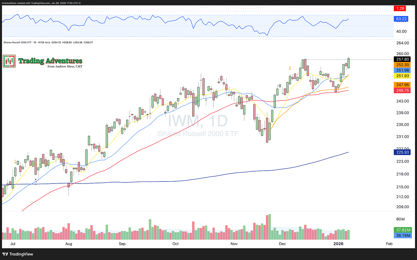 While QQQ and SPY consolidate near highs, IWM is resolving a multi-year range and establishing leadership.