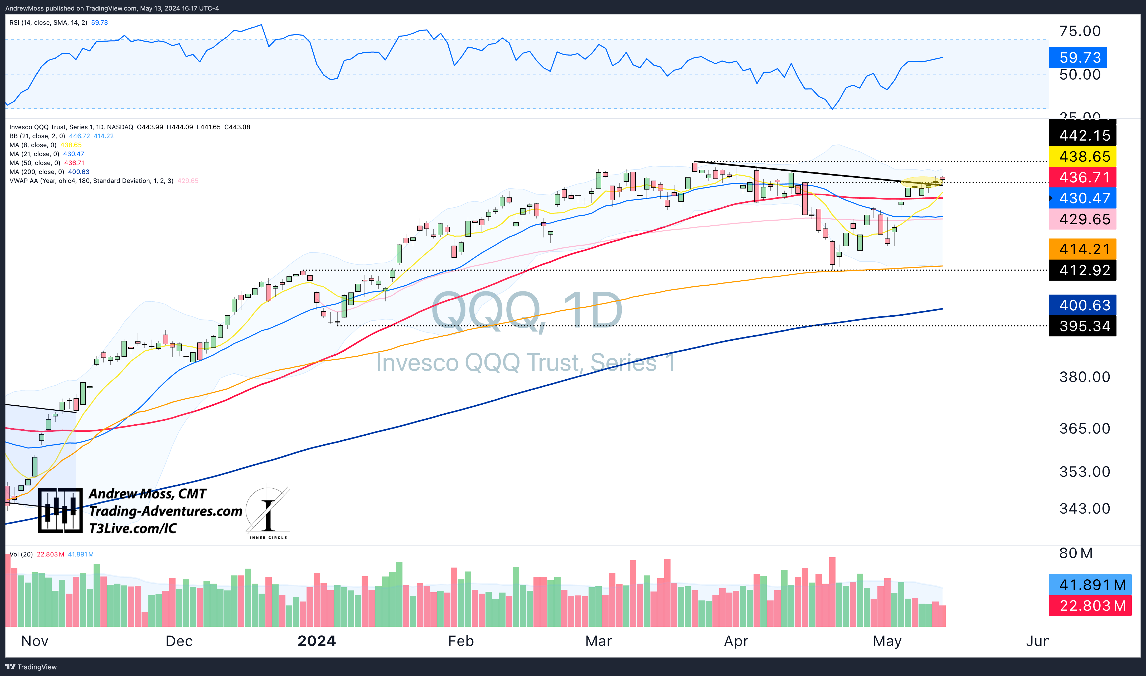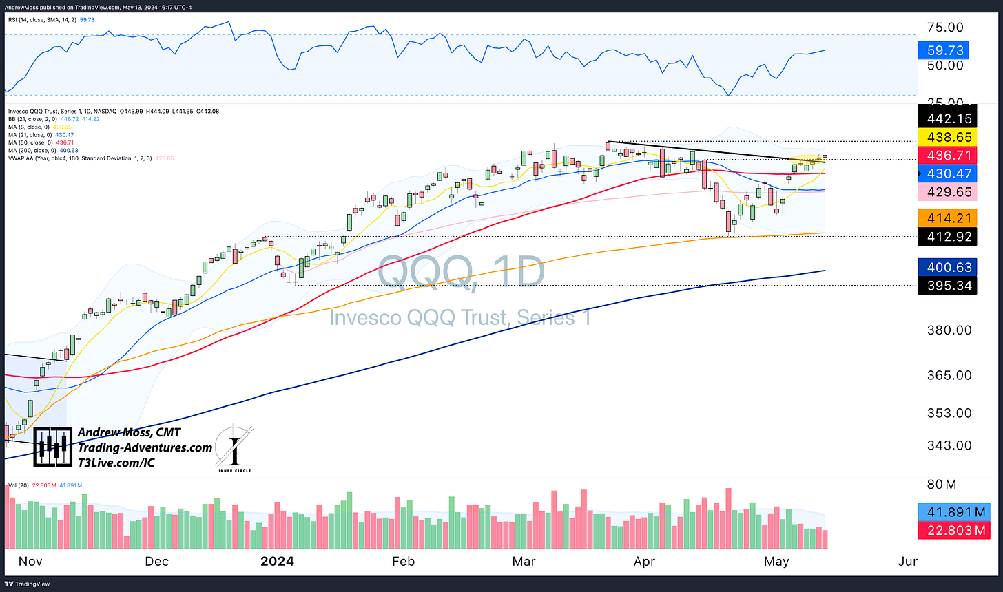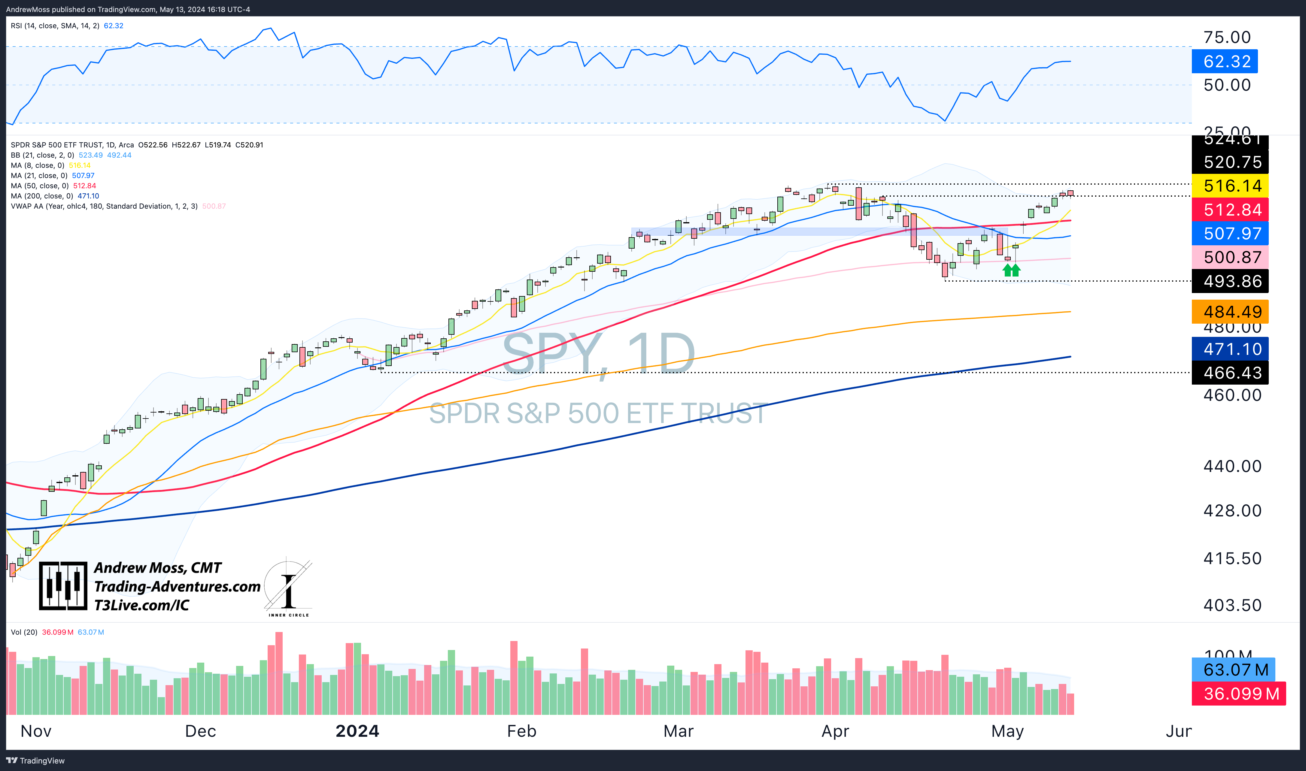 SPY managed to close just above the $529.75 pivot as we await PPI, CPI, and comments from the Fed Chairman.