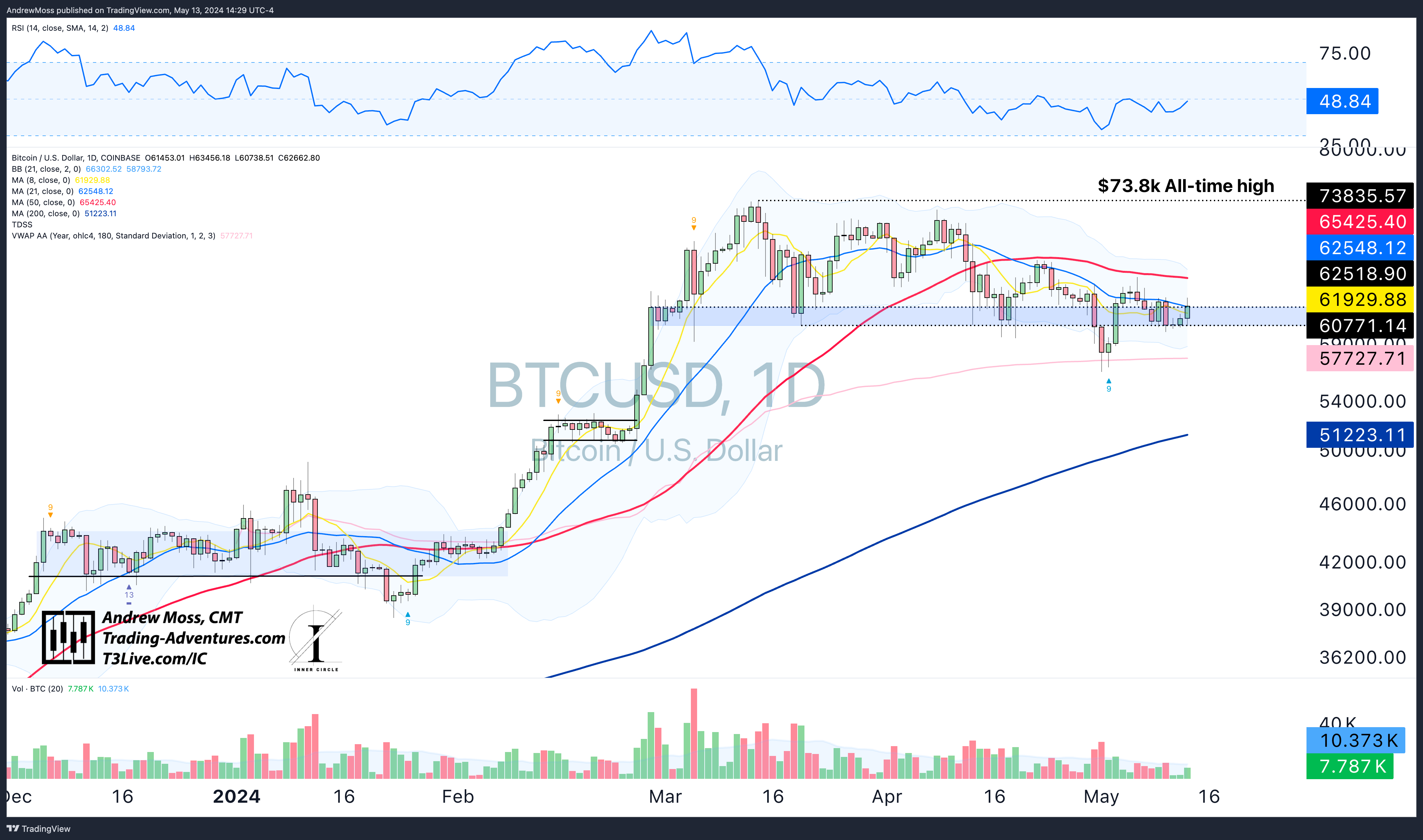BTCUSD continues to find support, followed by a bounce, but so far, it has not been able to get back over the 50-day MA.