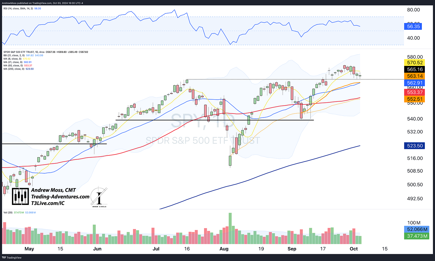 If not, the 21-day MA and the pivot low AVWAP are near $562-$563 for potential support. If that doesn’t hold, the next levels are the 50-day MA and a previous pivot low AVWAP near $552-$553.