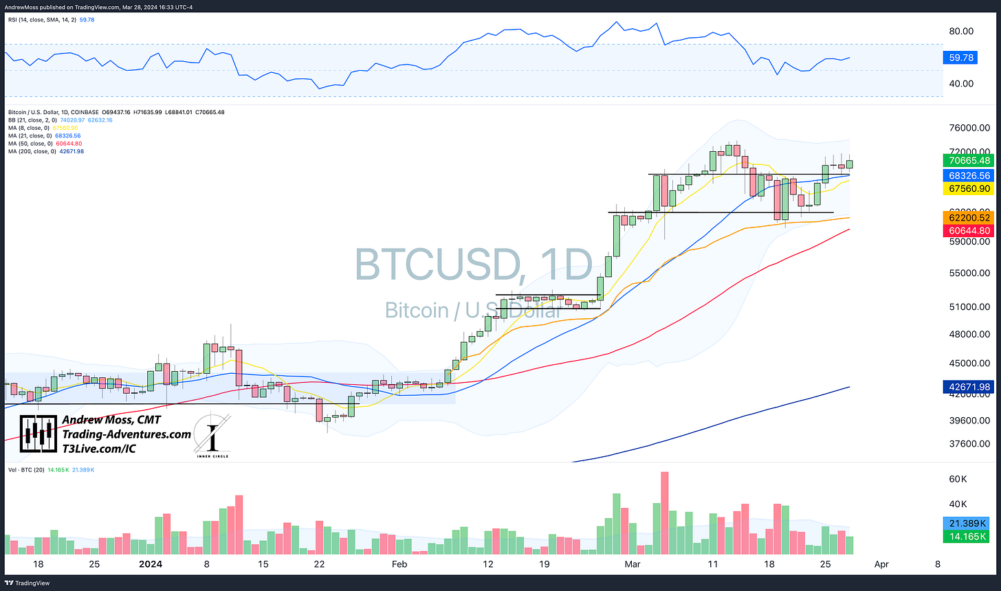 BTCUSD keeps going with continued consolidation. New highs should be coming again soon if the strength is going to stick around.