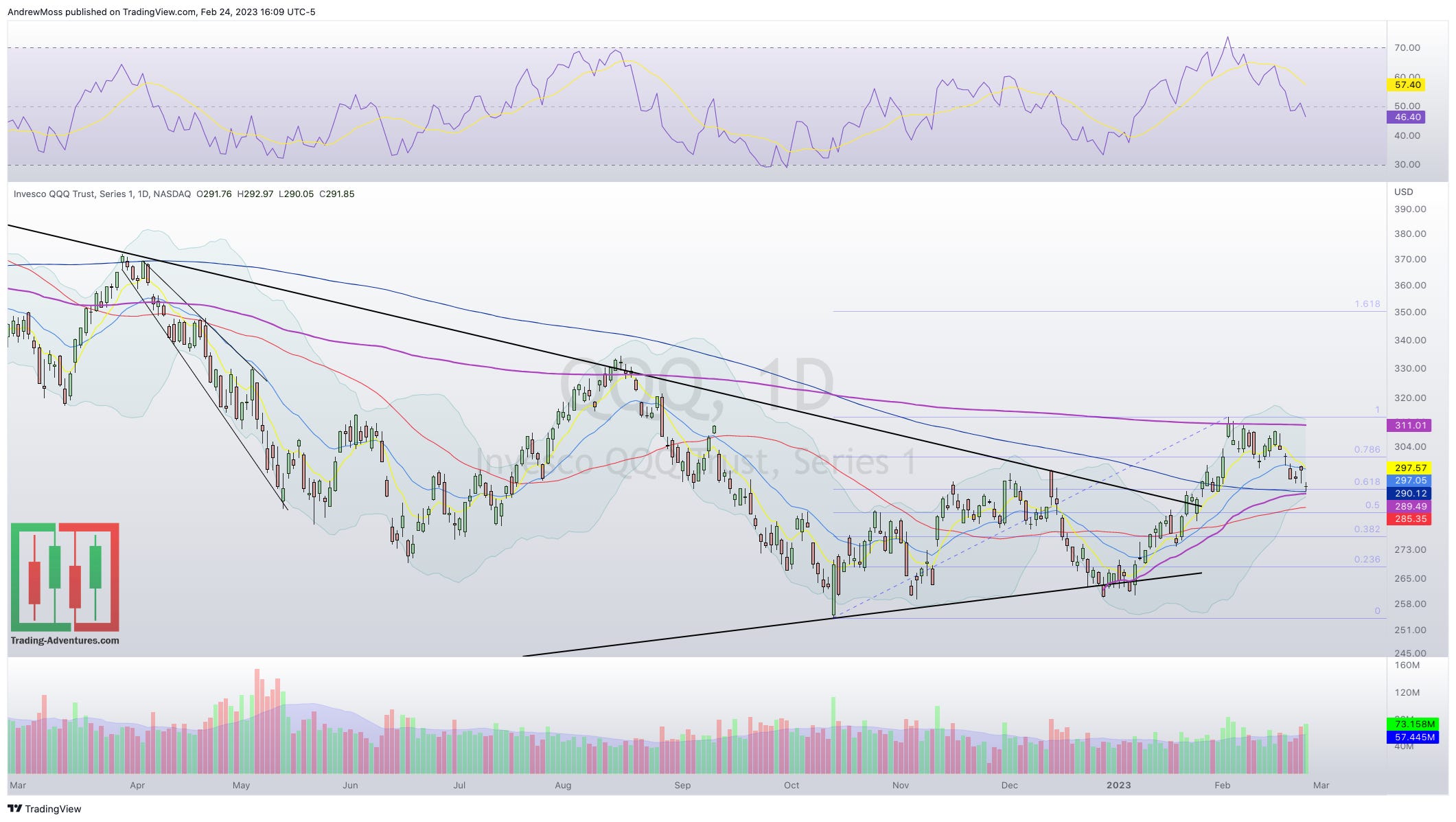 That news took stocks down and QQQ was down more the -2% and slightly below its 200-day moving average at one point; an event that seemed to become a forgone conclusion over the last couple of days.