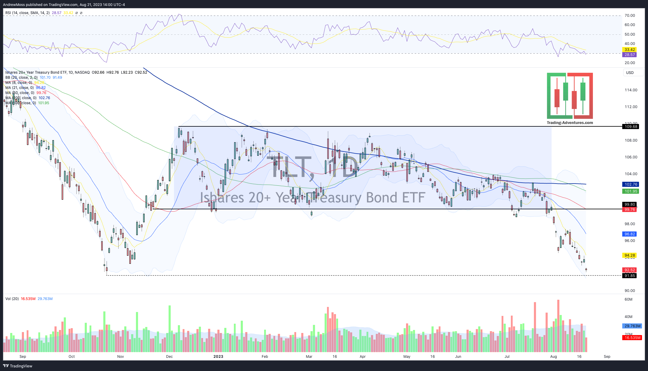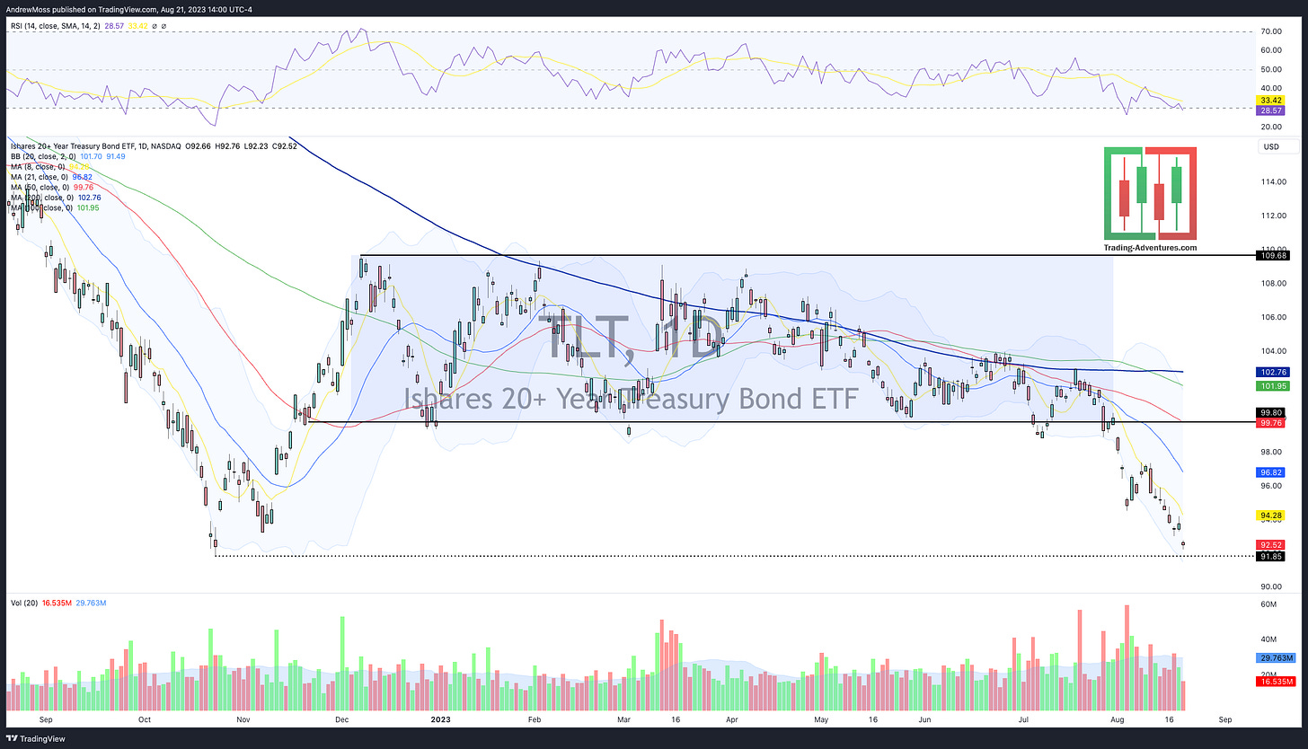 One more notable chart. TLT is making new lows for the year and approaching the 2022 low as long-term treasury yields move higher.