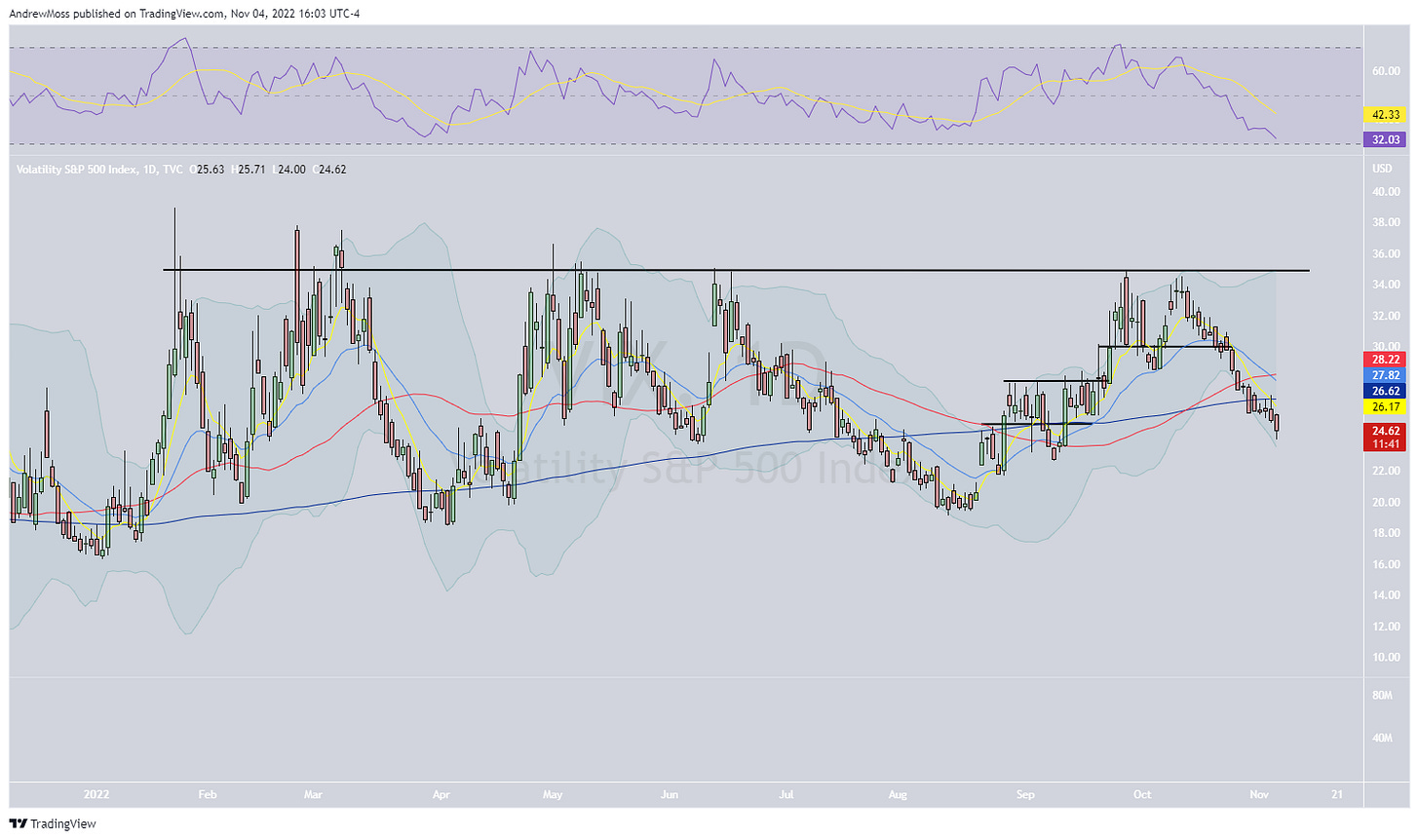 $VIX Continues to fall, although it doesn’t feel like it’s helping stocks this week. Interesting.